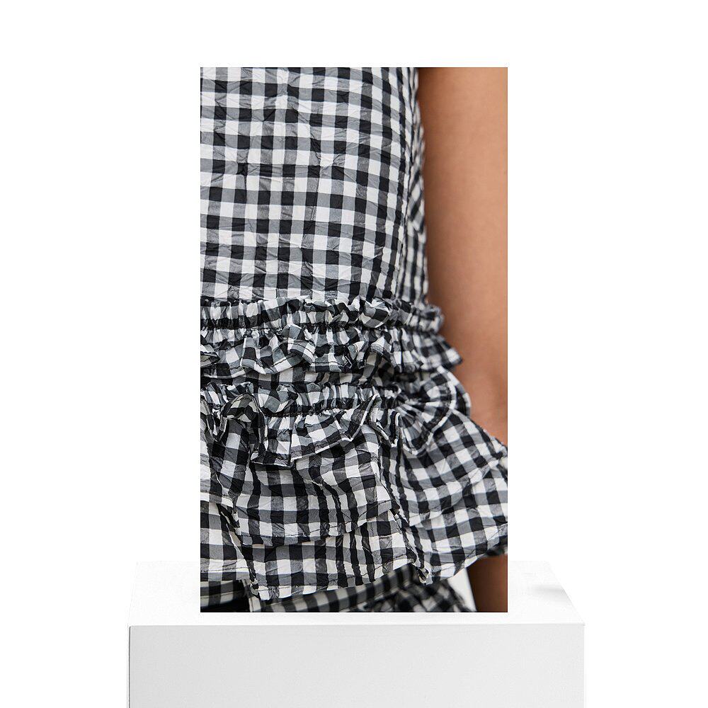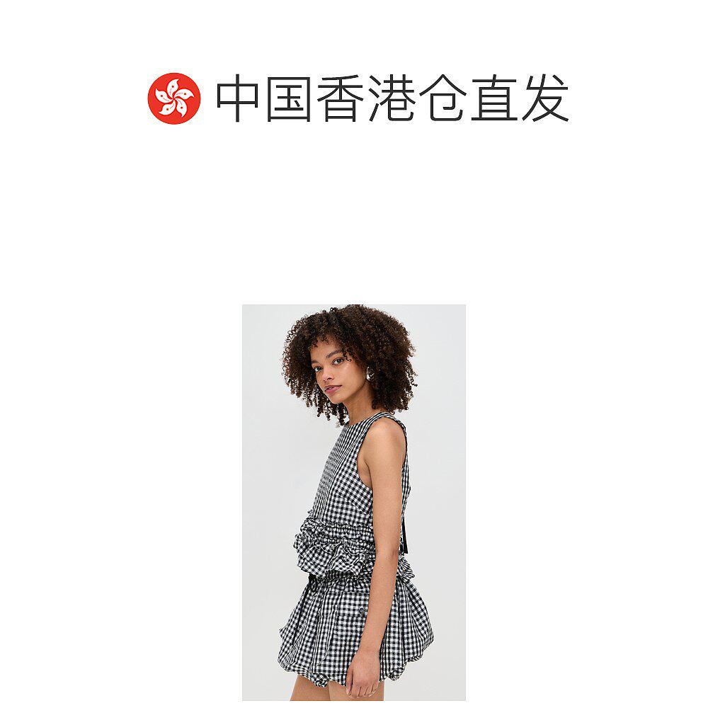 📚 1h可退 香港直邮GANNI 甘尼 女士 褶皱塔夫绸格纹褶边上衣
