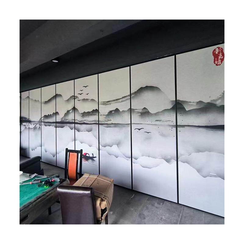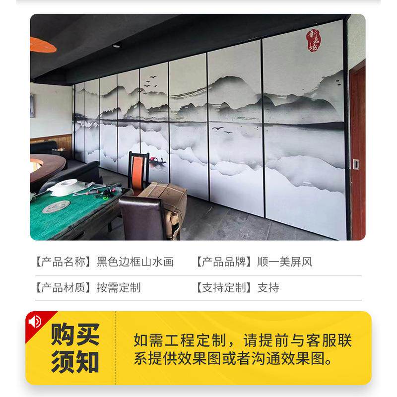 📚 黑色边框山门水画办公室风黑色边框宴会厅屏饭店包厢移隔动折叠铝