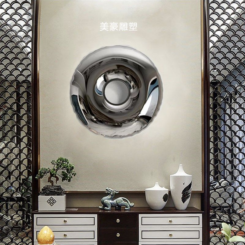 📚 圆形不锈b钢金属甜甜圈壁饰轻奢酒店样板房沙发背不锈钢圆环背景