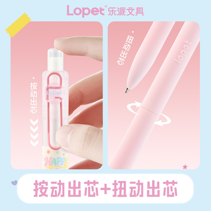 📚 Lopet乐派幸福日记本速干中性笔套装按动笔ST尖旋转笔学生用刷题笔考试用笔记签字笔办公0.5mm高颜值文具套装