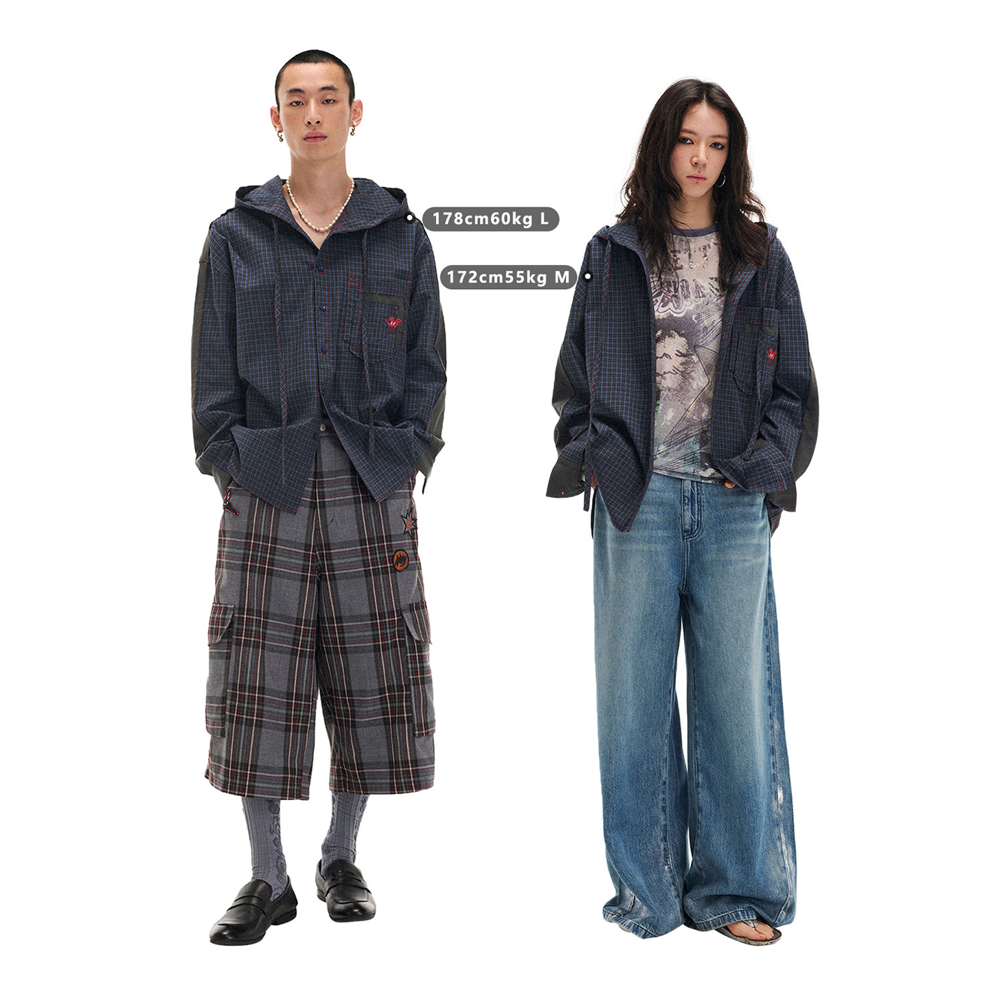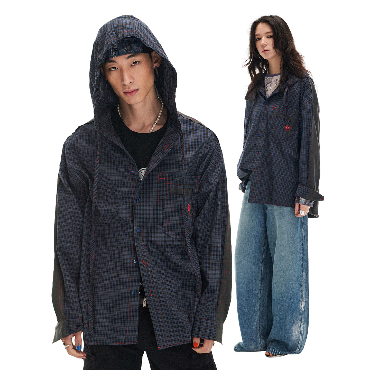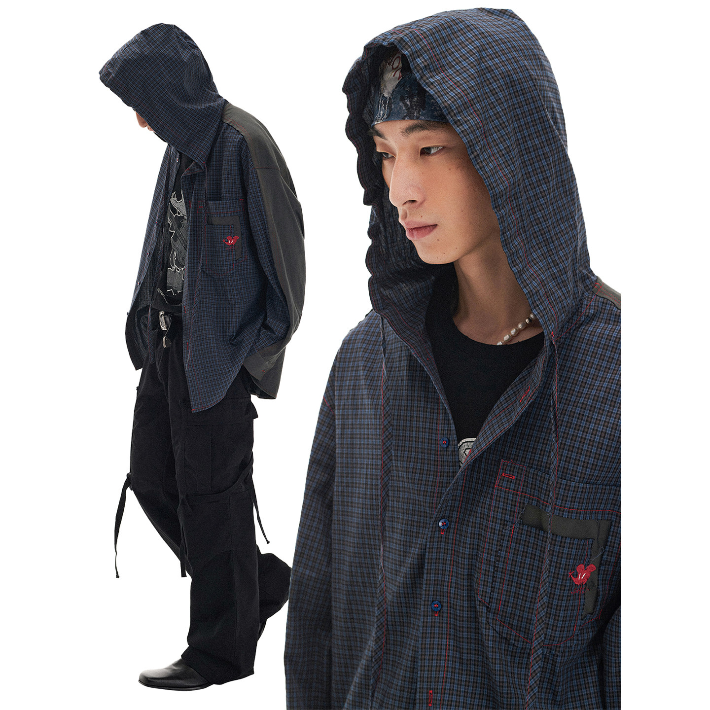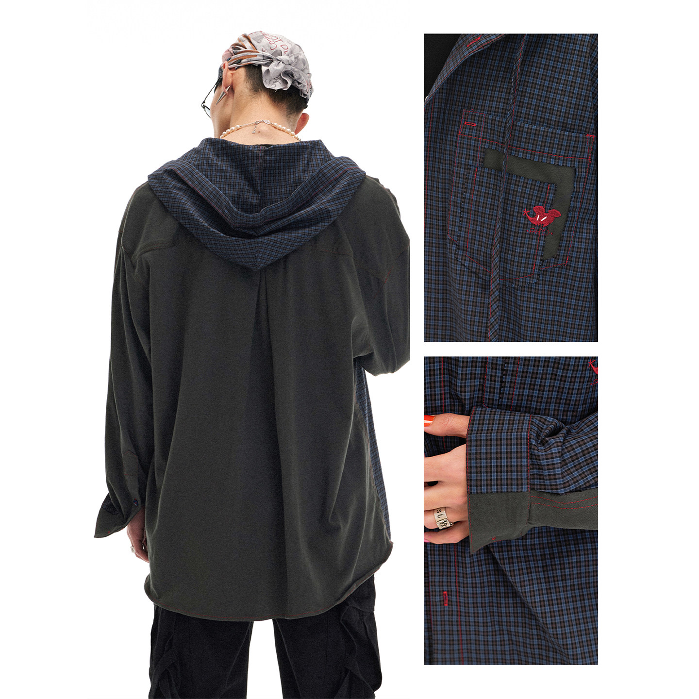 📚 物理少年「解构校样」老鼠刺绣复古解构remake感拼接垂坠连帽衬衫