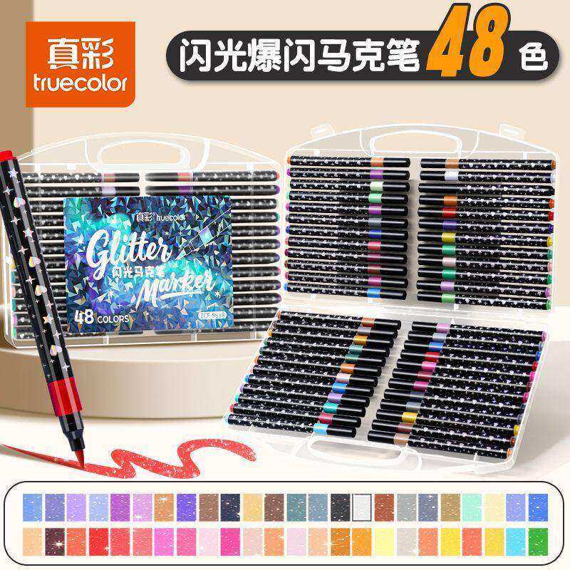 📚 真彩荧光笔彩色闪光啫喱笔软头马克笔儿童无毒小学生专用闪光画笔