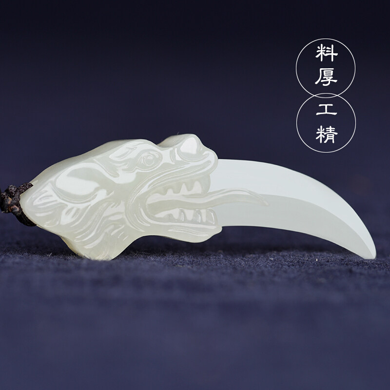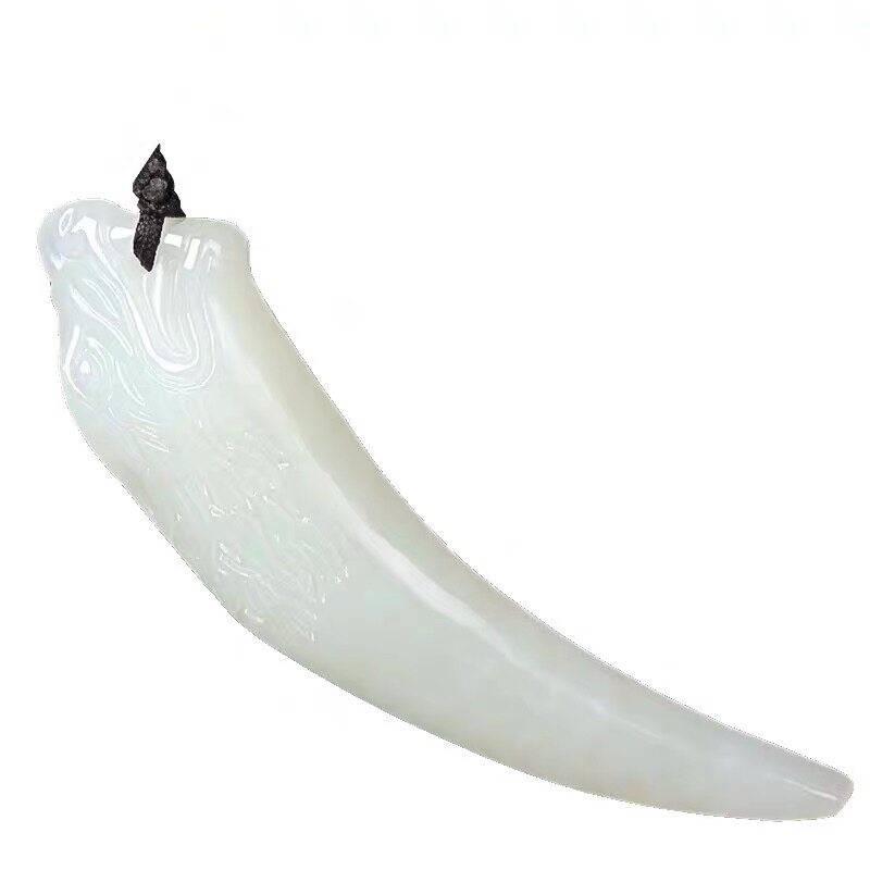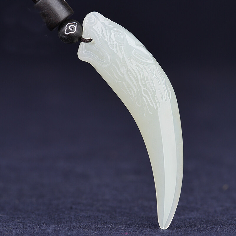 📚 天然白玉狼牙吊坠复古潮流男女生情侣吊坠霸气狼牙龙牙挂件玉项链