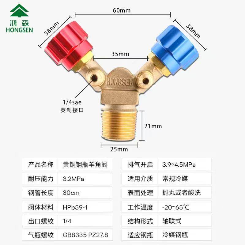 📚 鸿森冷媒回收加注专用钢瓶阀门/高低压羊角阀/防爆冷媒瓶嘴子阀门