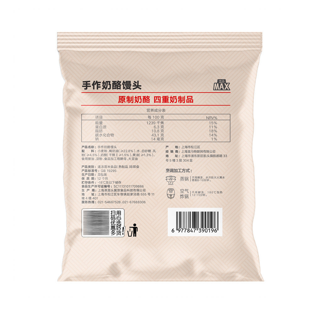 📚 盒马MAX 手作奶酪馒头 900g 18个