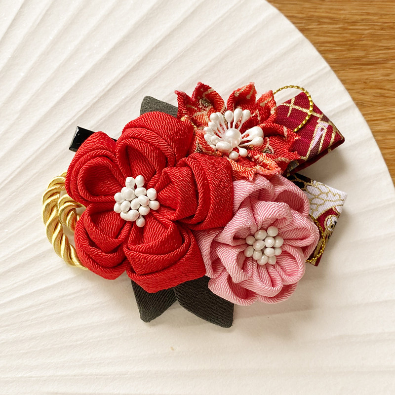 📚 山鸟和色日系和风绉布发饰和服汉服头饰写真流苏发夹 红色