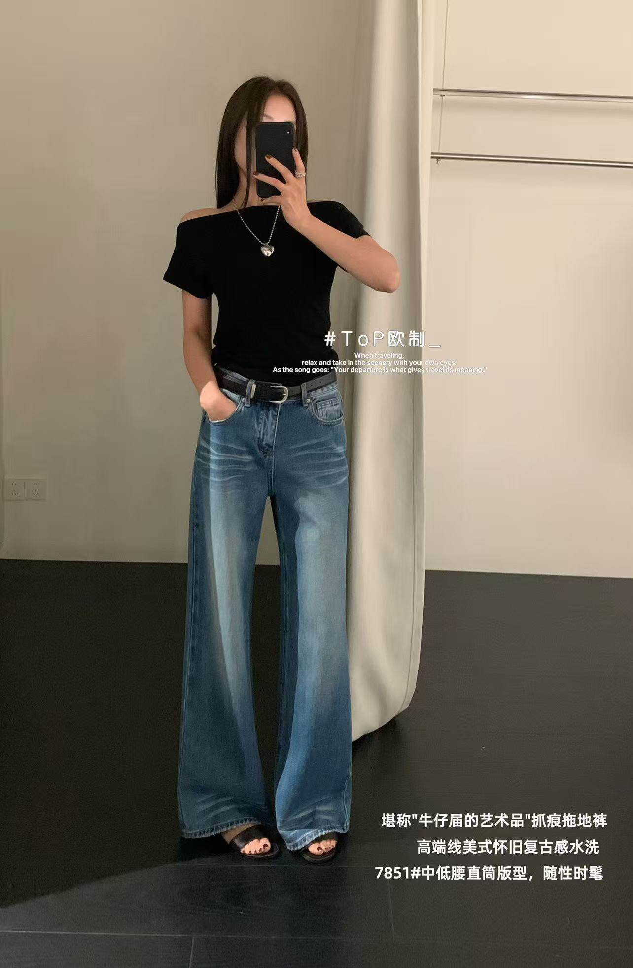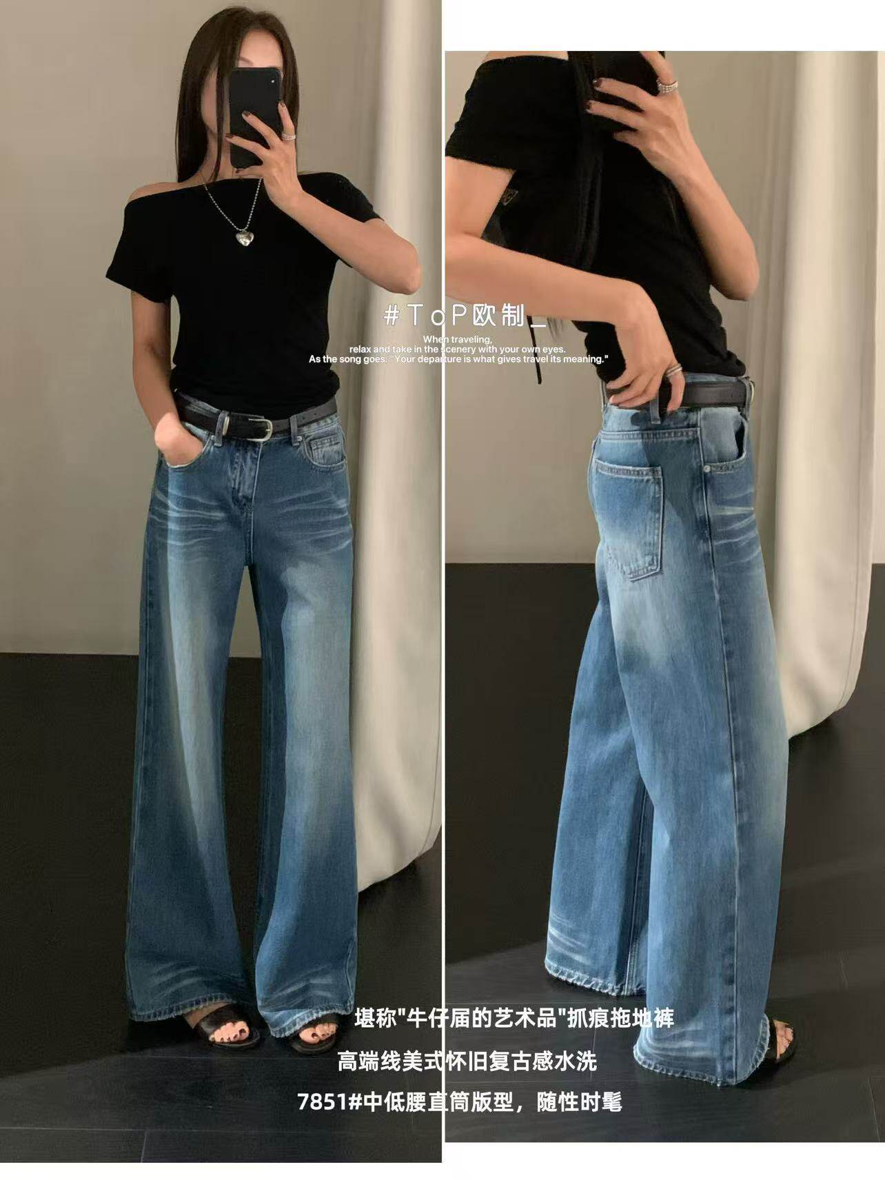 📚 TOP 7851欧版阔腿牛仔裤女2026春季新款扎染美式宽松垂感阔腿长裤