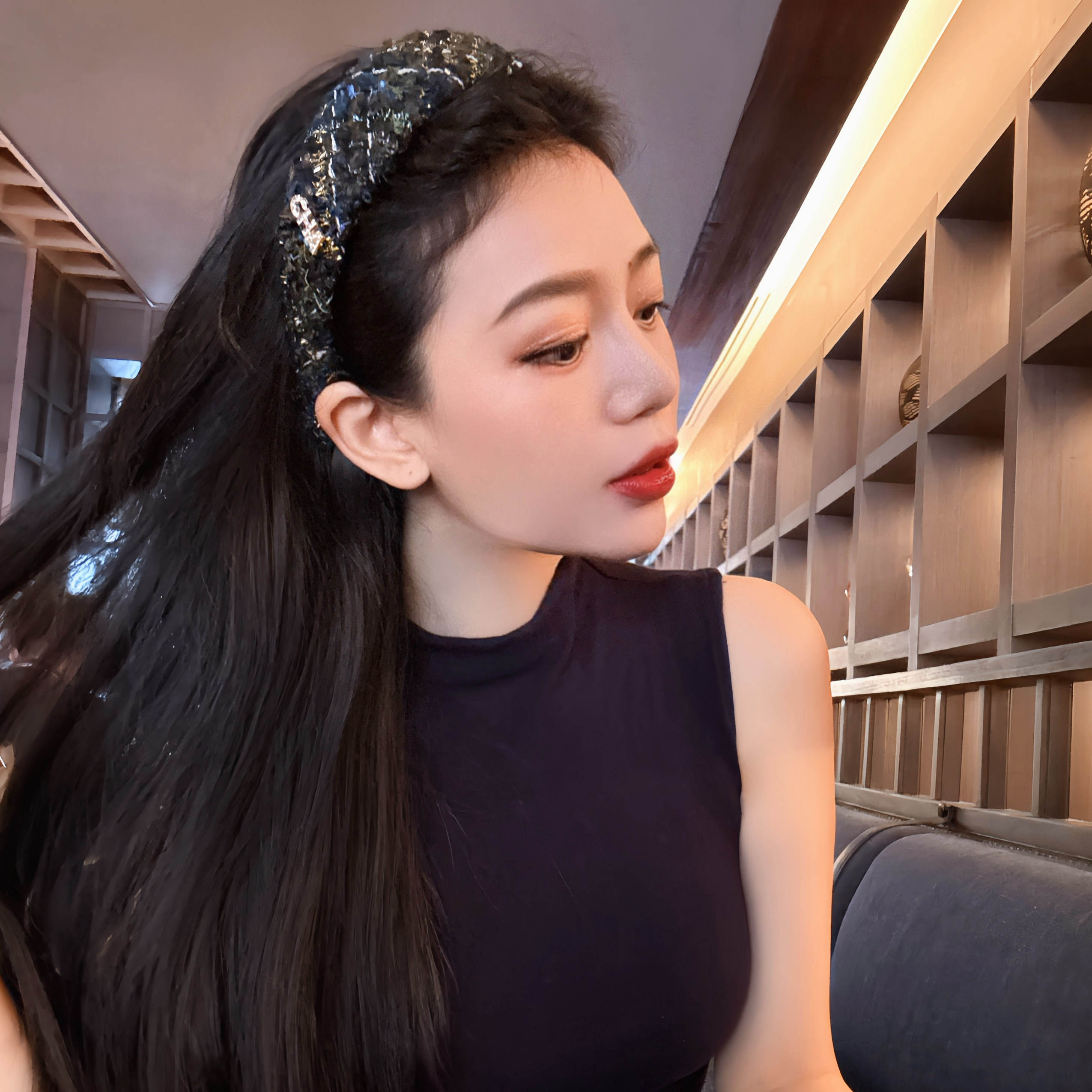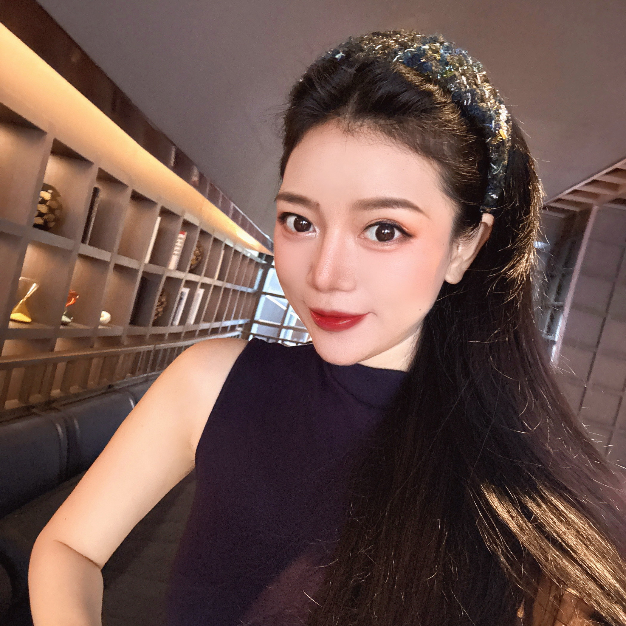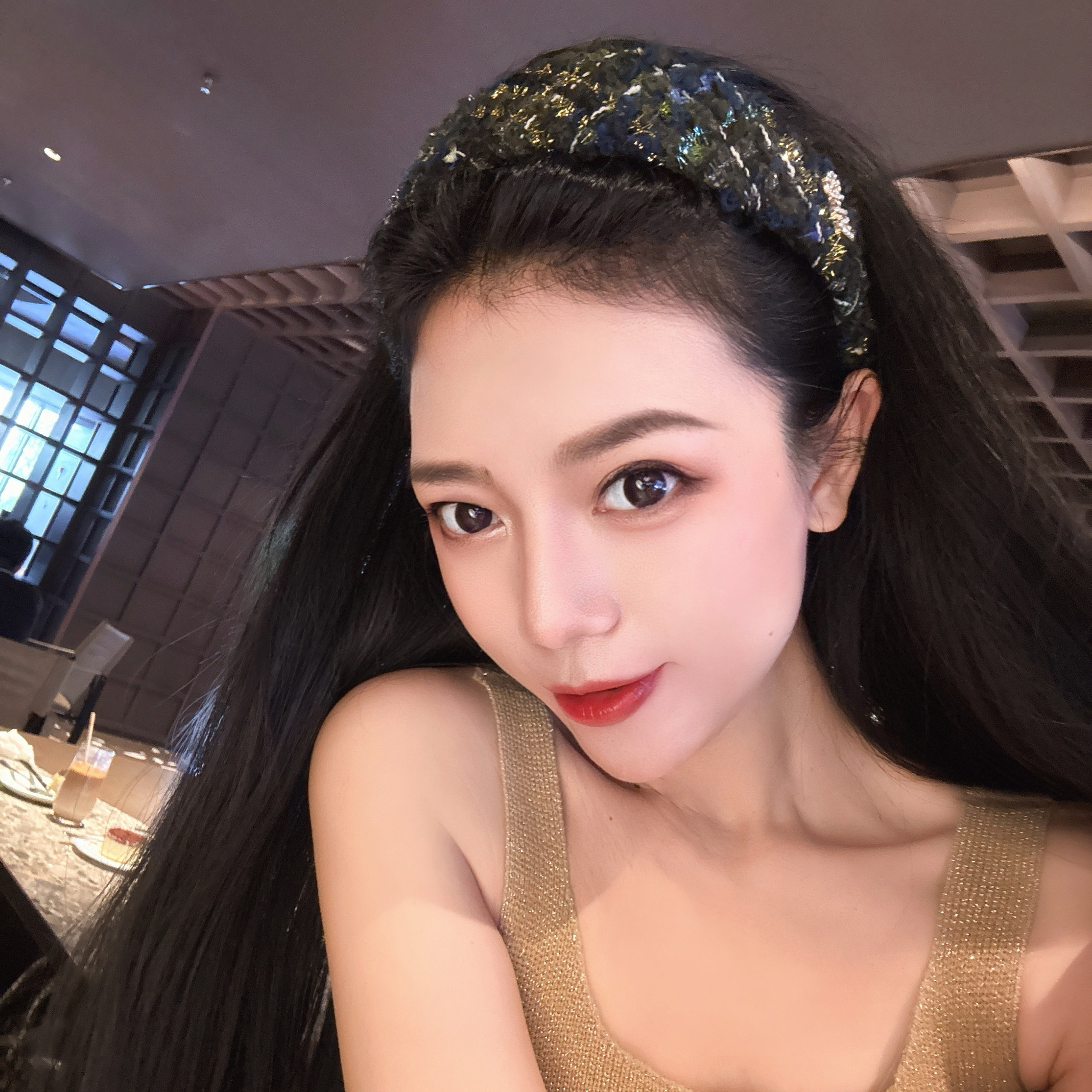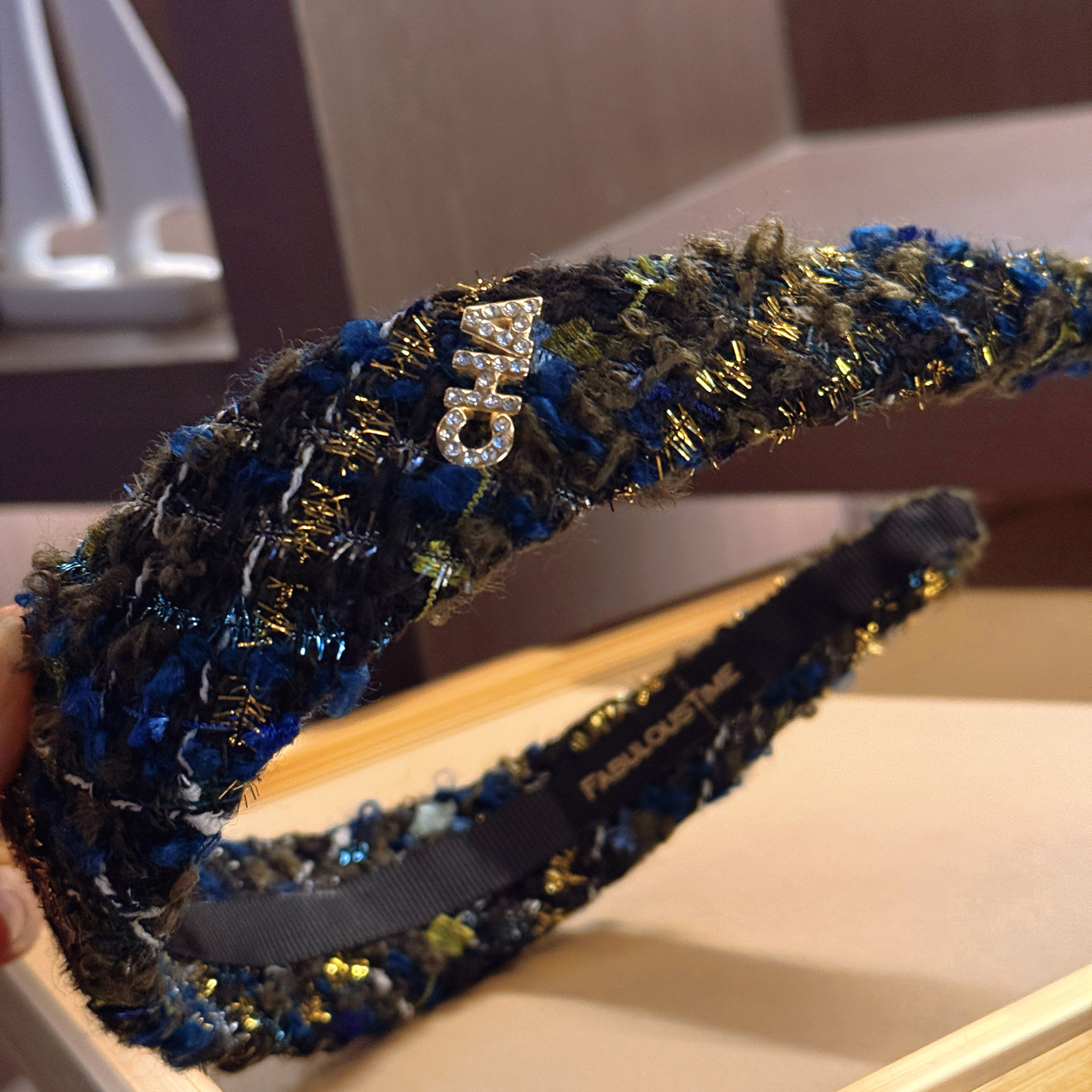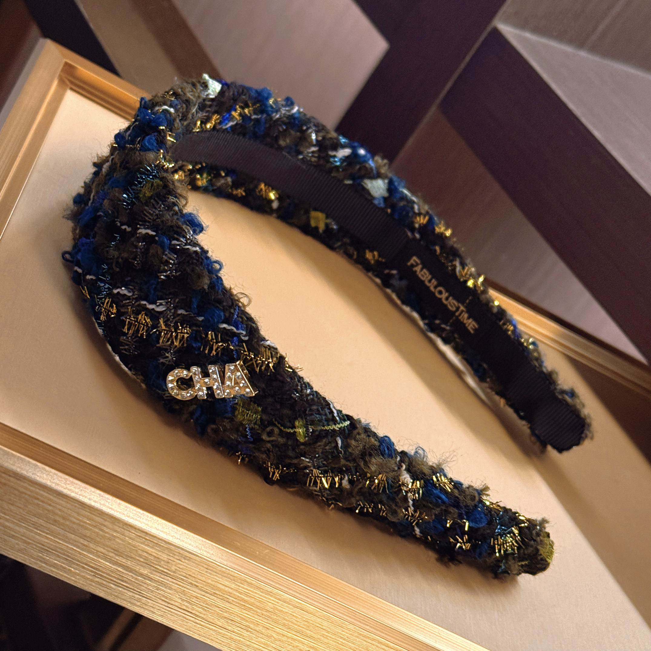 📚 FABULOUS TIME 香香风cha粗花呢高颅顶发箍 蓝绿色金丝毛绒感头箍