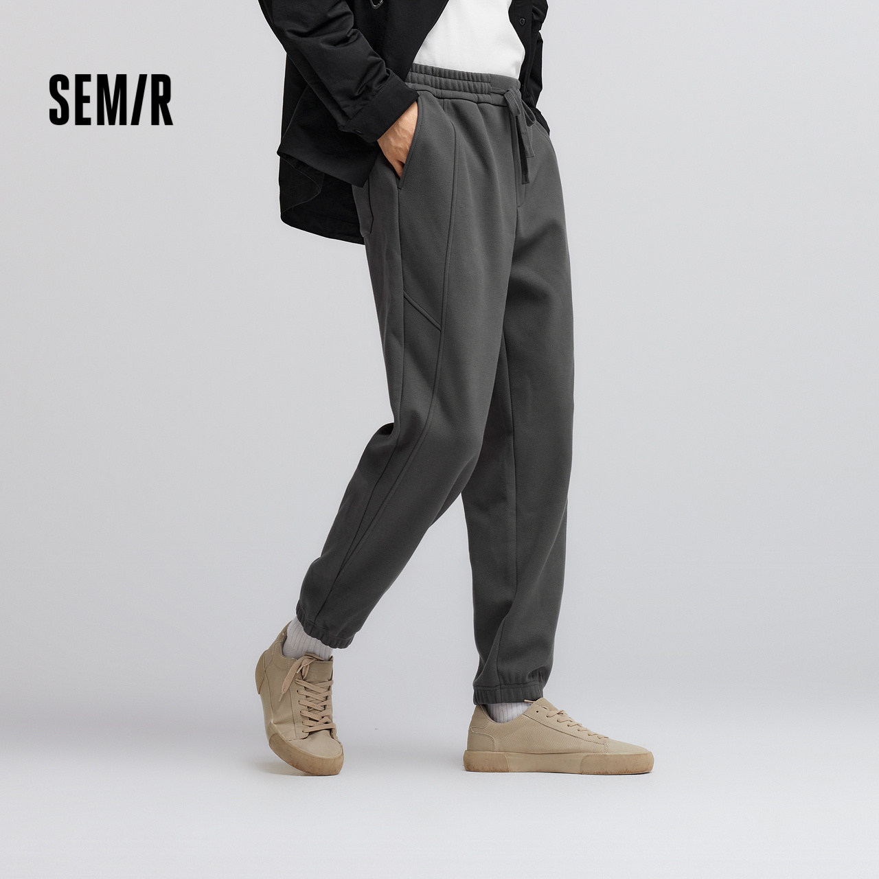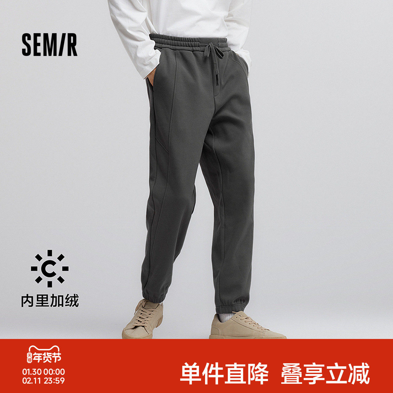 📚 [商场同款]森马休闲裤男2024冬季新款加绒束脚针织裤纯色百搭裤子