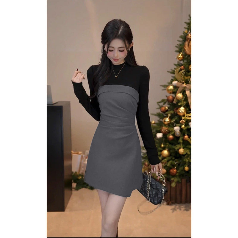 📚 2026春季新款爆款轻奢风裙子不规则拼接假两件连衣裙女D4715