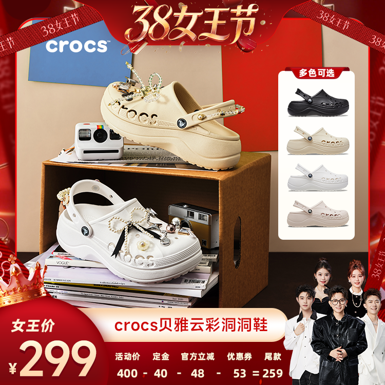📚 【香菇38女王节】Crocs卡骆驰贝雅云彩洞洞鞋女鞋沙滩鞋|208186