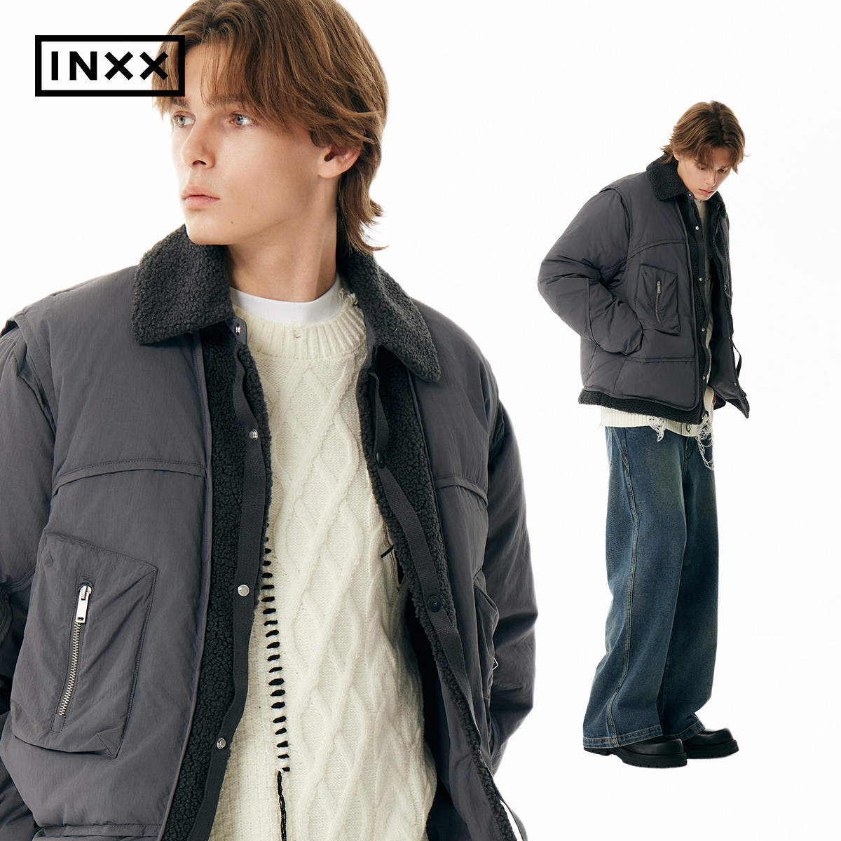 #INXX #工装风 #羊羔毛拼接羽绒服 #时尚大口袋 #翻领外套 #券后价760