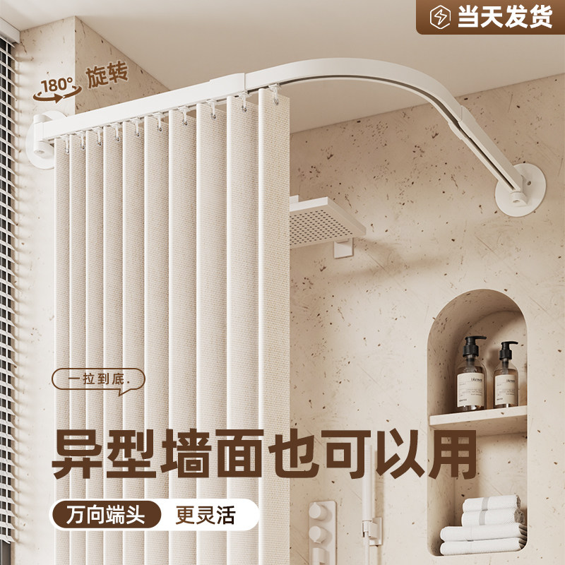 📚 弧形浴帘轨道杆免打孔浴室隔断帘防水高档圆形卫生间L型洗澡帘
