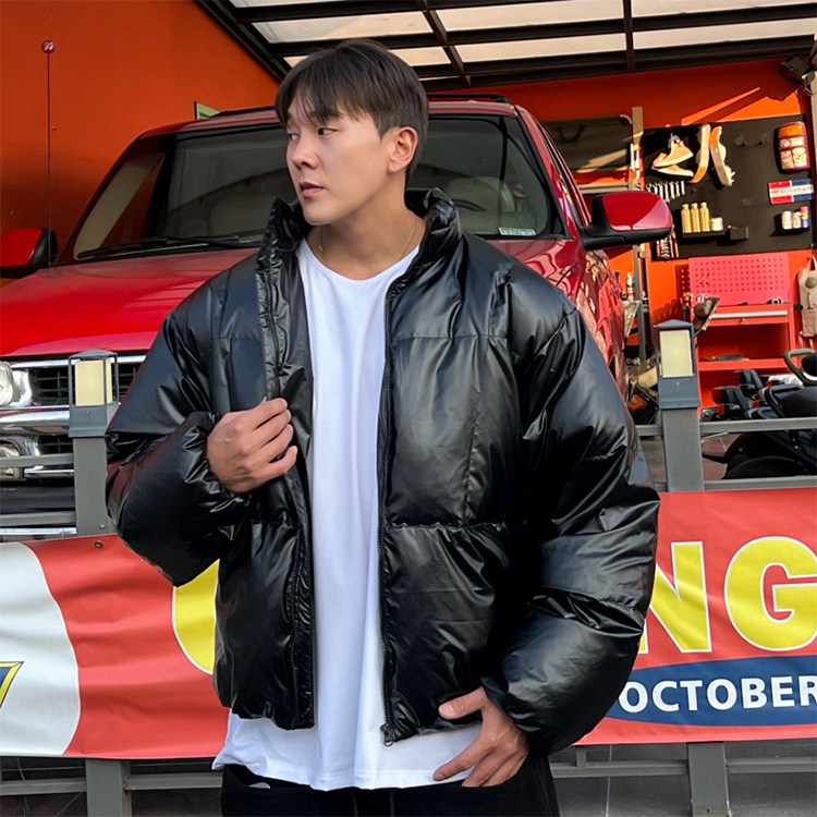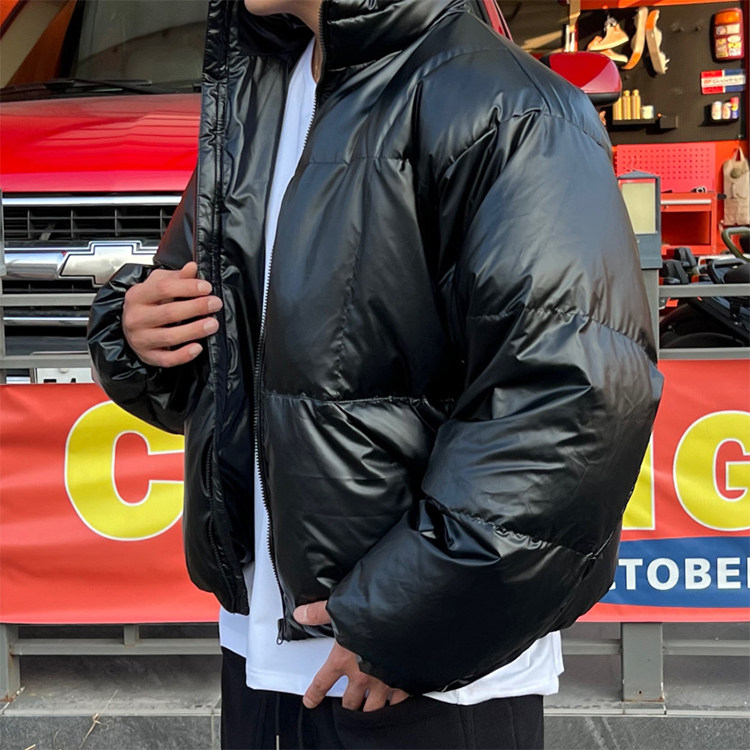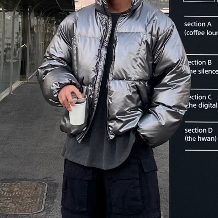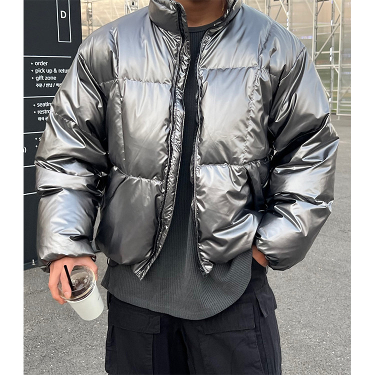 📚 韩国东大门代购冬季重工潮流金属光泽感街头个性立领羽绒服男外套