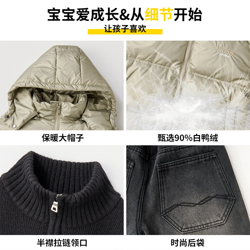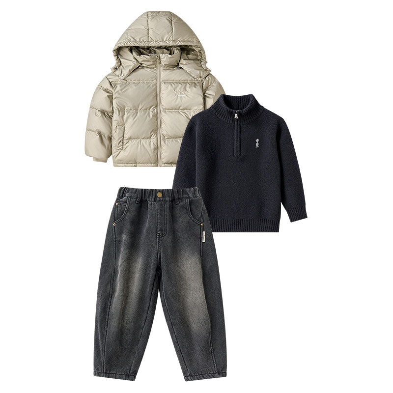 📚 男童套装冬季儿童90羽绒服高领毛衣加绒牛仔裤三件套冬装中大童潮