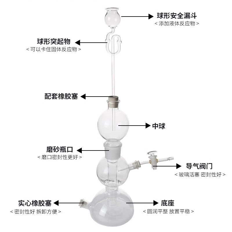 📚 启普发生器 250ml 气体发生器 玻璃仪器 教学仪器 广州发货