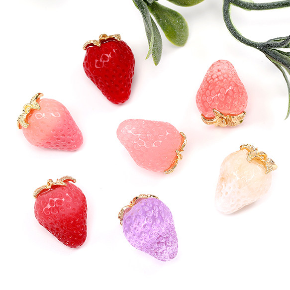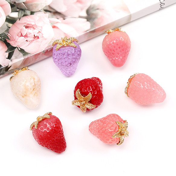 📚 纯色中号树脂树脂草莓日本进口ins爆款品质可爱水果DIY手工吊坠