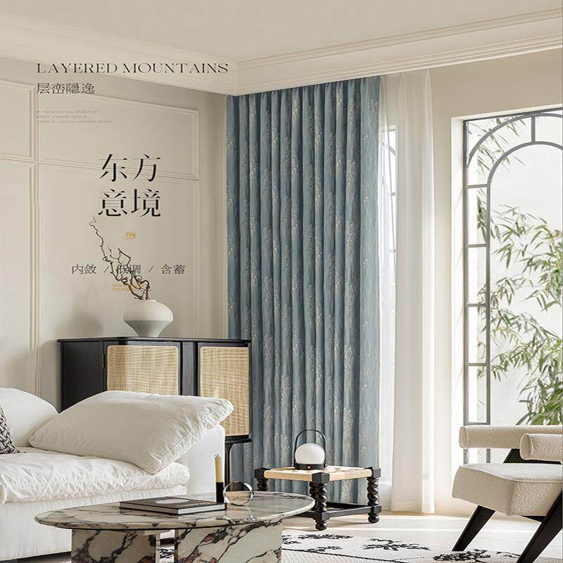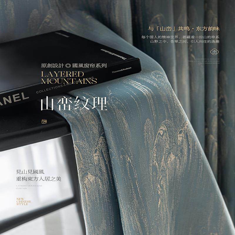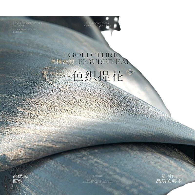 📚 新中式窗帘东方古典审美高精密色织提花面料鎏金山水国风窗帘布料