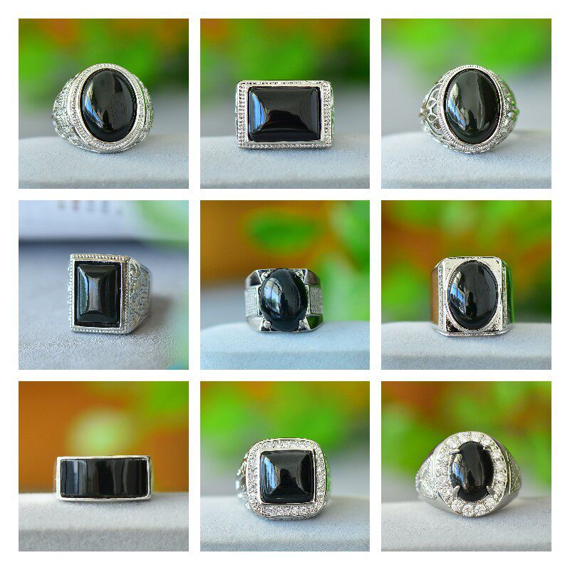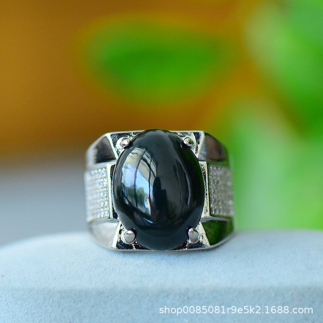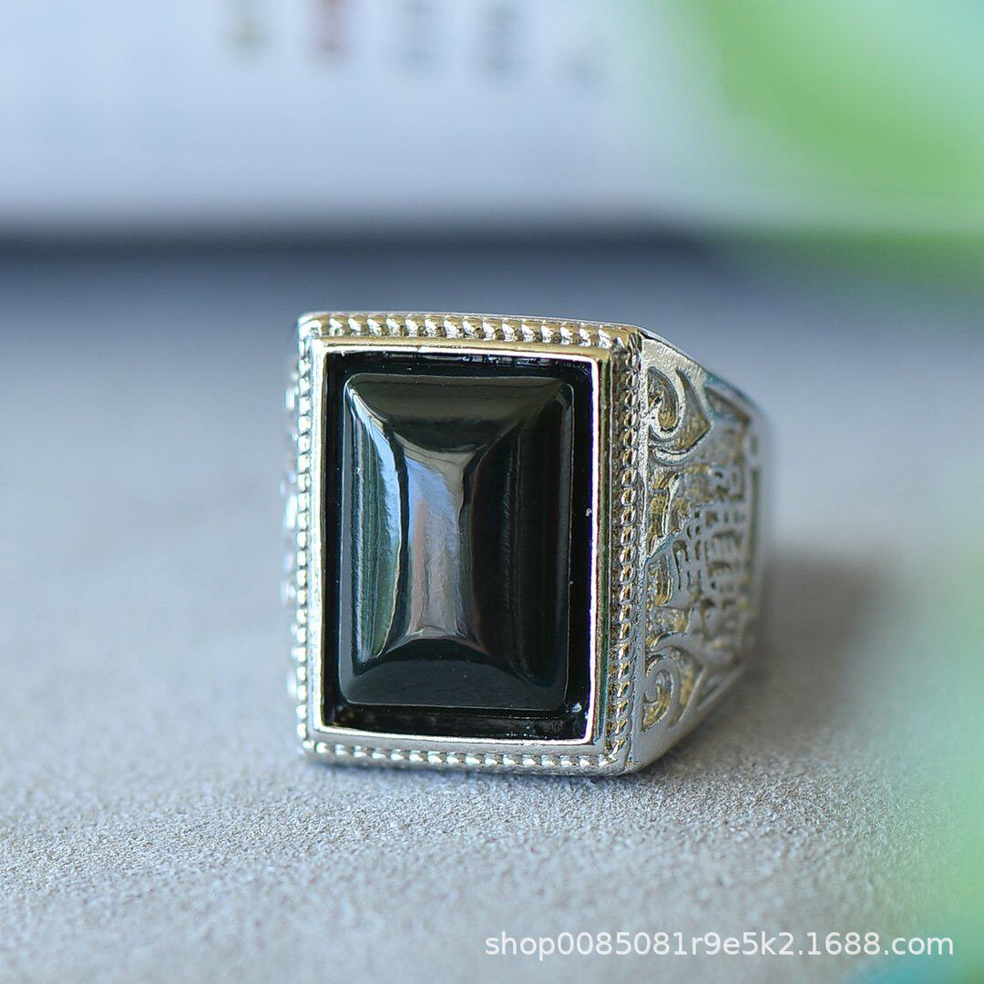 📚 和田玉青玉男款戒指方形蛋面多款选择合金镶嵌男士霸气潮流时尚款