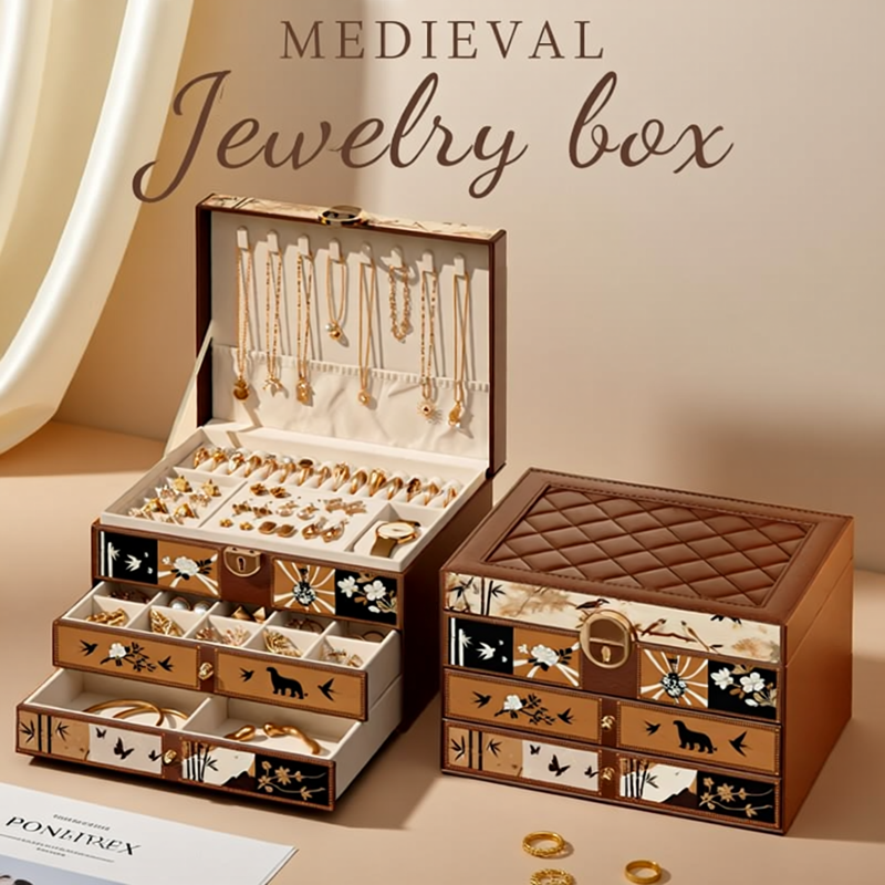 📚 中古风首饰盒高档精致黄金耳钉项链收纳盒大容量防氧化2026年新款
