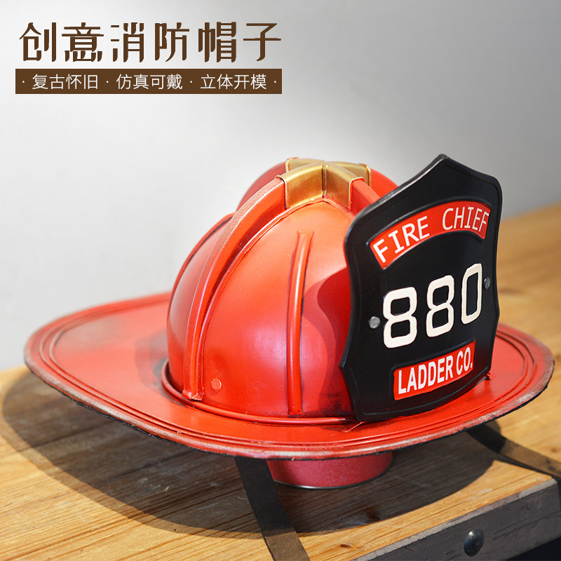 📚 美式消防帽摆件装饰品铁艺可穿戴消防员帽子店铺酒吧商场软装摆设