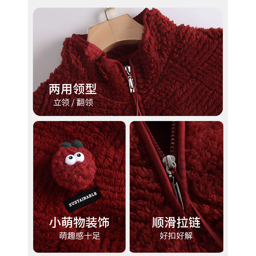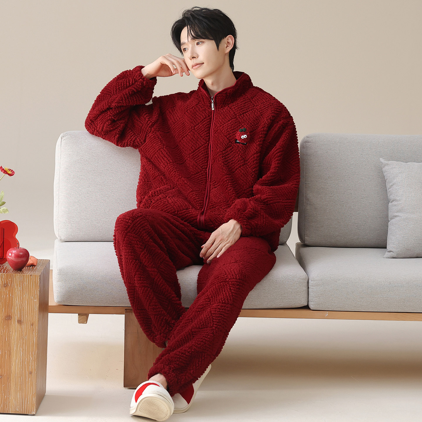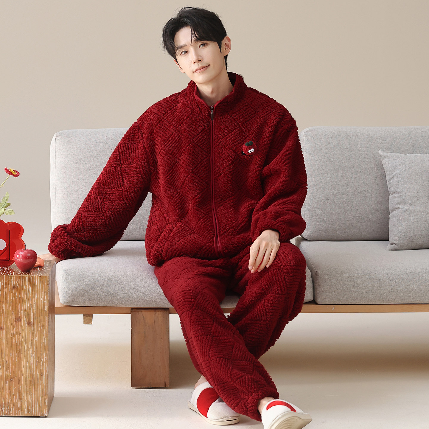 📚 红色睡衣男士秋冬季珊瑚绒加厚拉链本命年家居服法兰绒新婚款套装