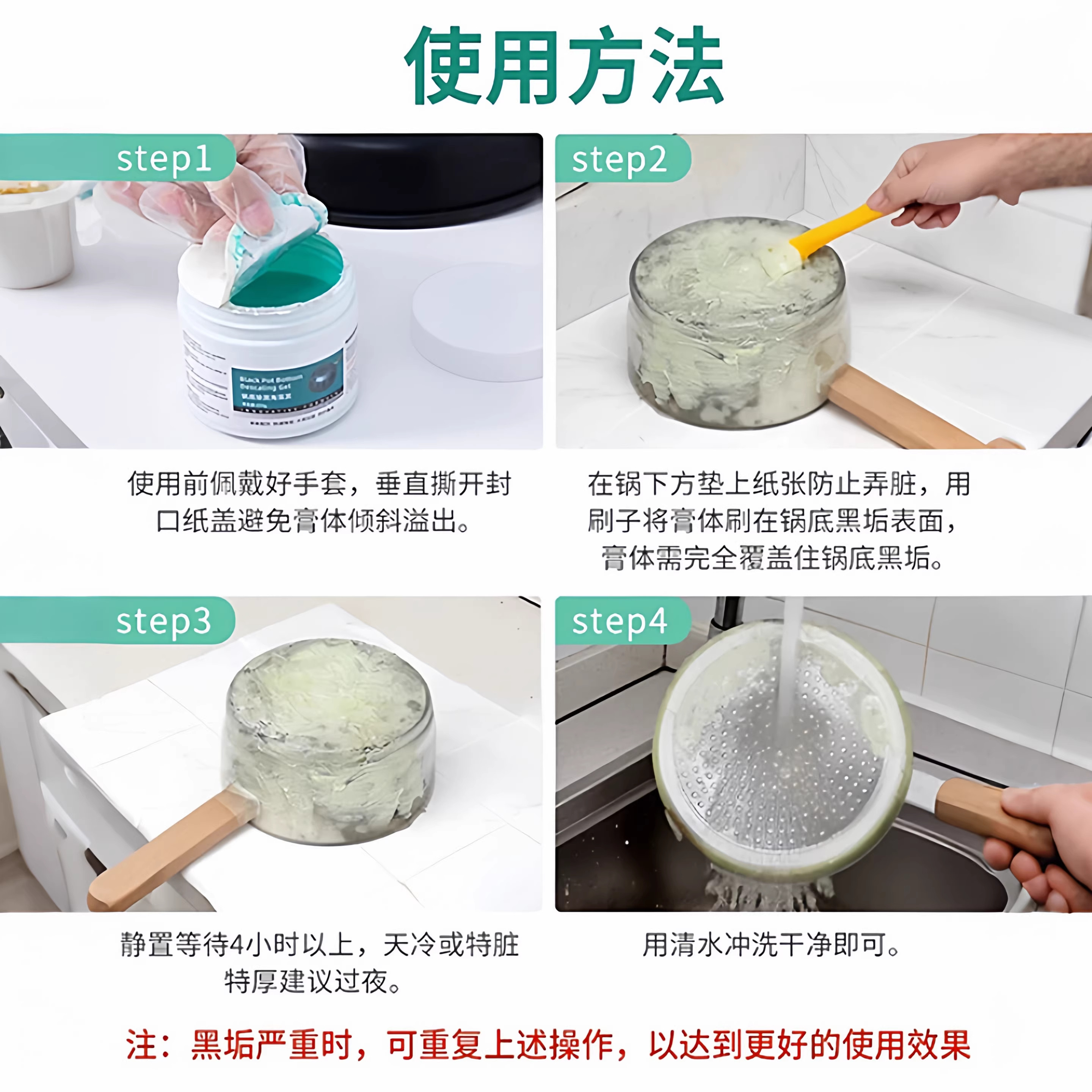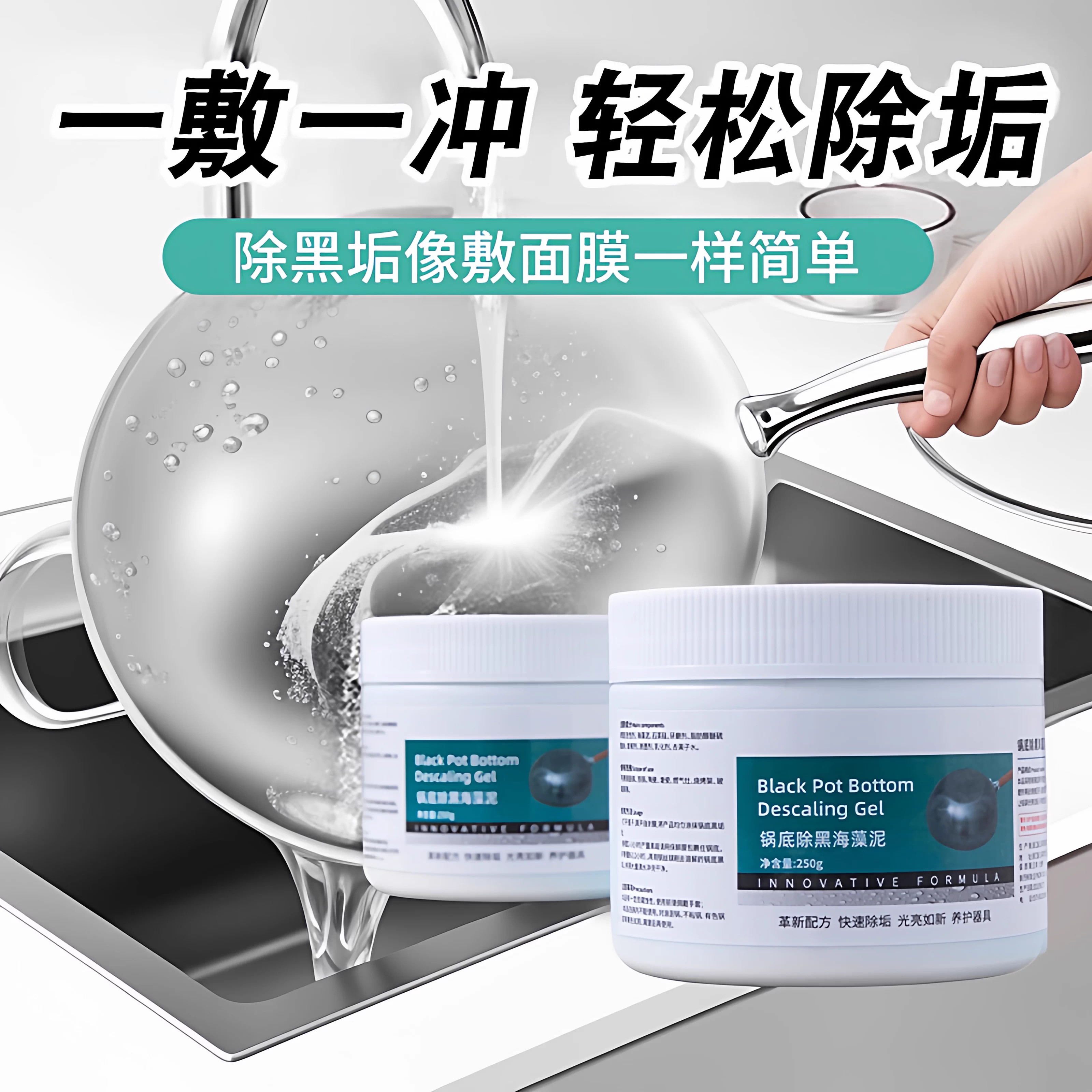 📚 锅底黑垢除黑清洁剂多用途不锈钢黑重油污焦渍黑锅海藻泥除垢