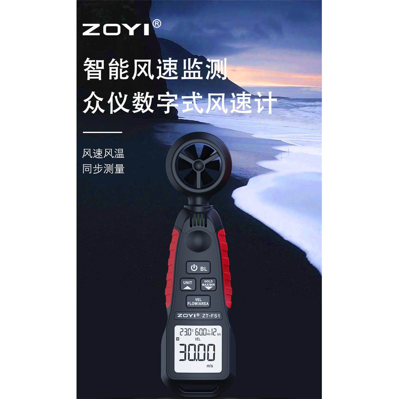 📚 众仪手持式ZT-FS1高精度风速仪测量风量风力温湿度测量风速计