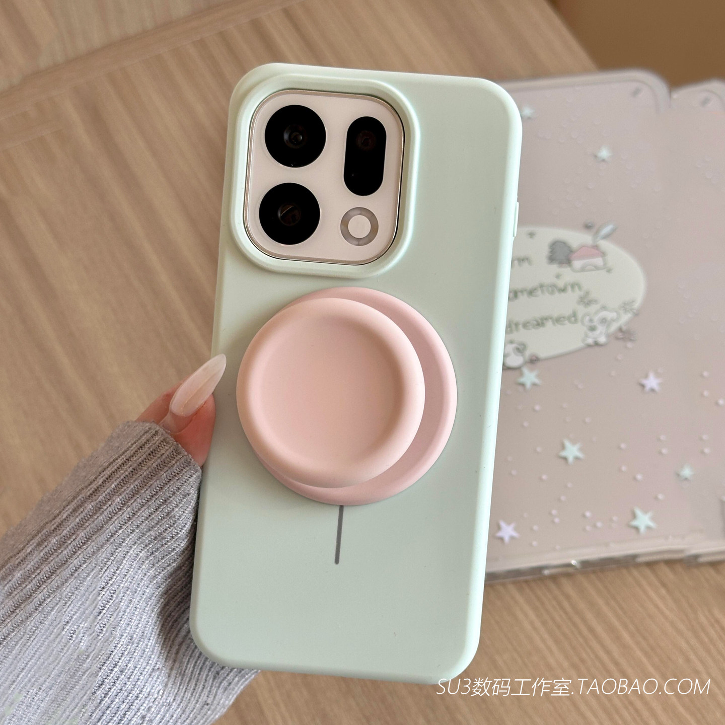 📚 耐脏磁吸充电伸缩支架液态硅胶适用oppoFindX9手机壳pro薄荷奶绿色FindX8s女ultra防摔X200s磨砂X300软糯mini