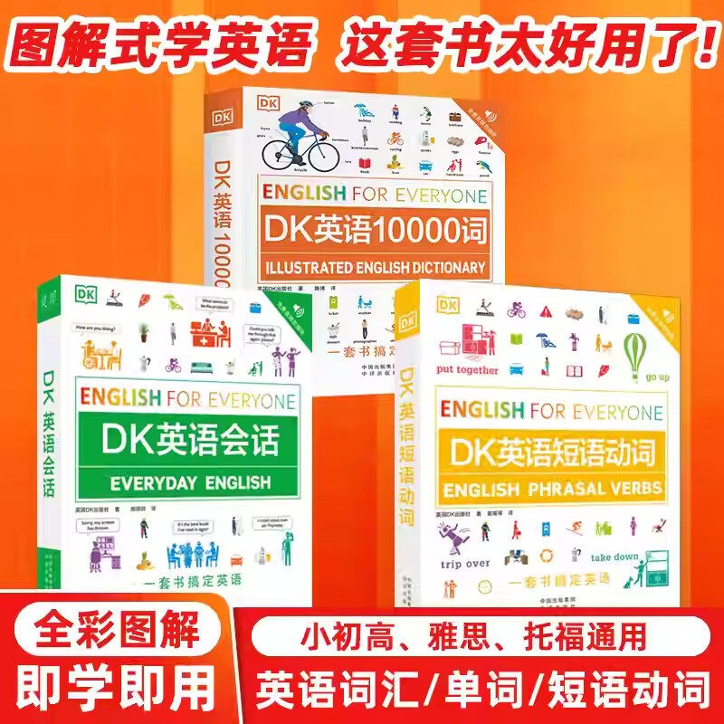 📚 DK英语10000词 DK英语会话 DK英语短语动词全3册全彩图解即学即用一万词汇语法全书籍中高考雅思托福托业考试入门自学零基础