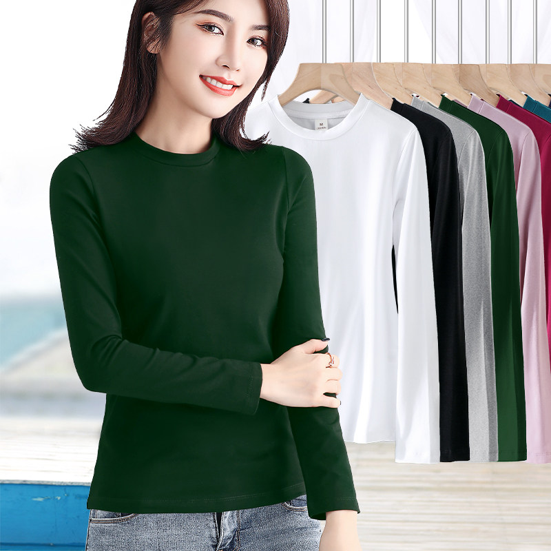 📚 深绿色半高领春秋中老年妈妈打底衫精梳棉长袖t恤内搭女士秋衣薄