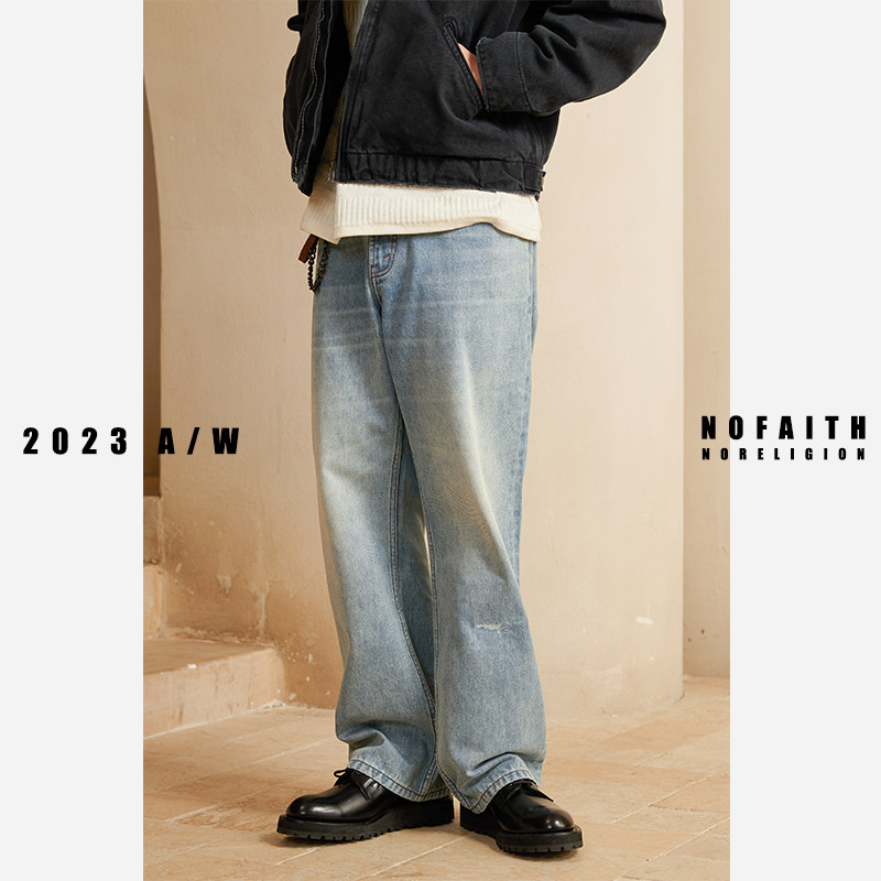 🔥NOFAITH水洗蓝色牛仔裤💫复古男裤,日系风爆款,券后仅239!