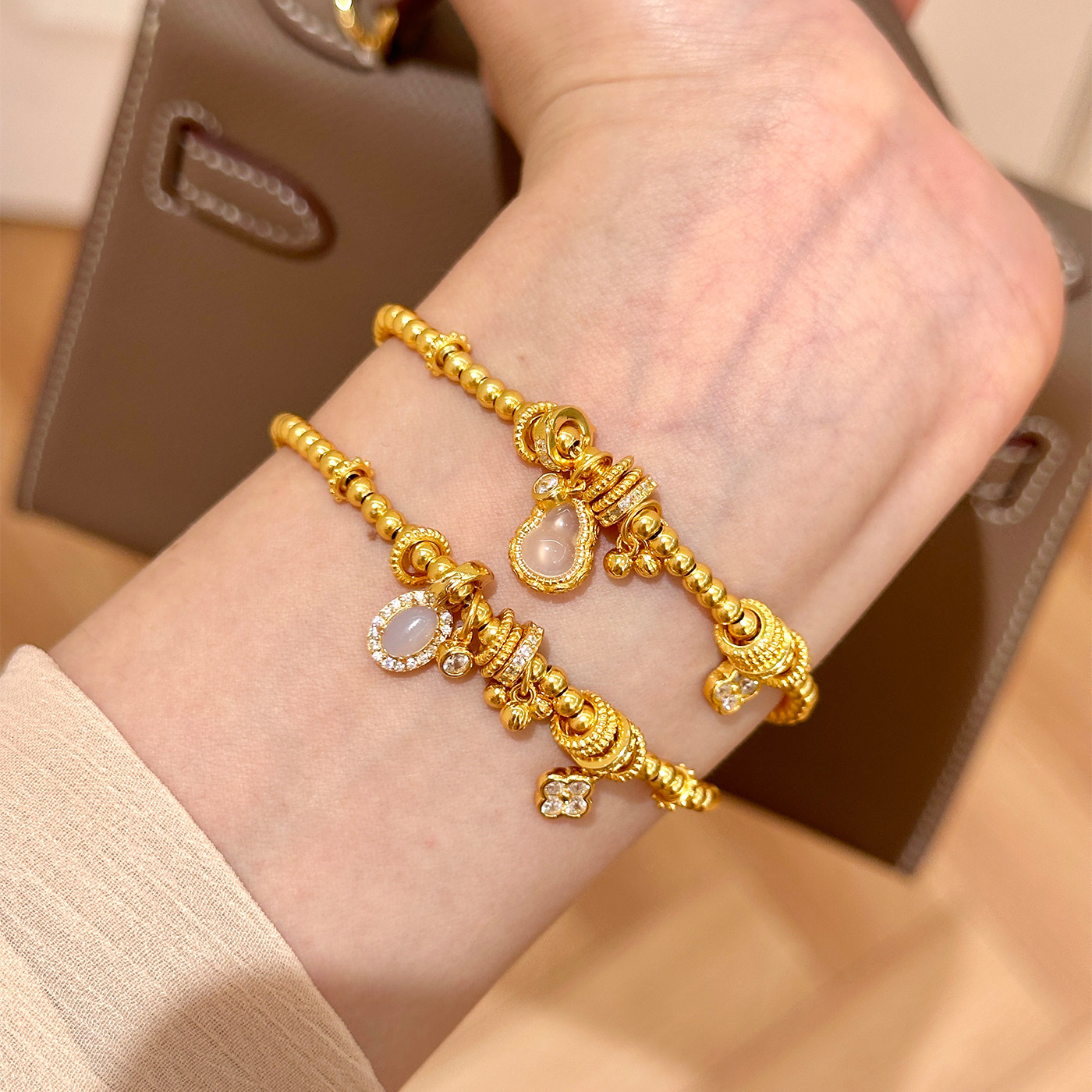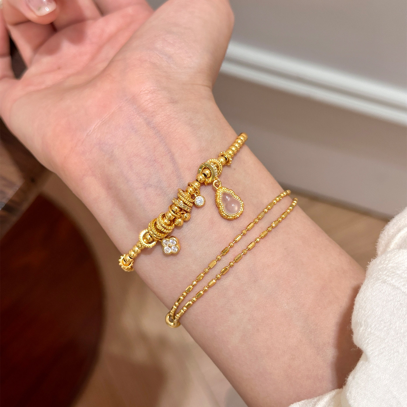 📚 谷岚 龙心同款925纯银镀金水沫玉葫芦配饰盘缠手链女轻奢小众高级