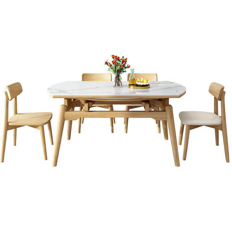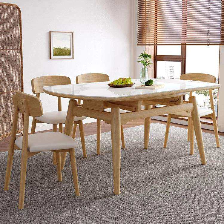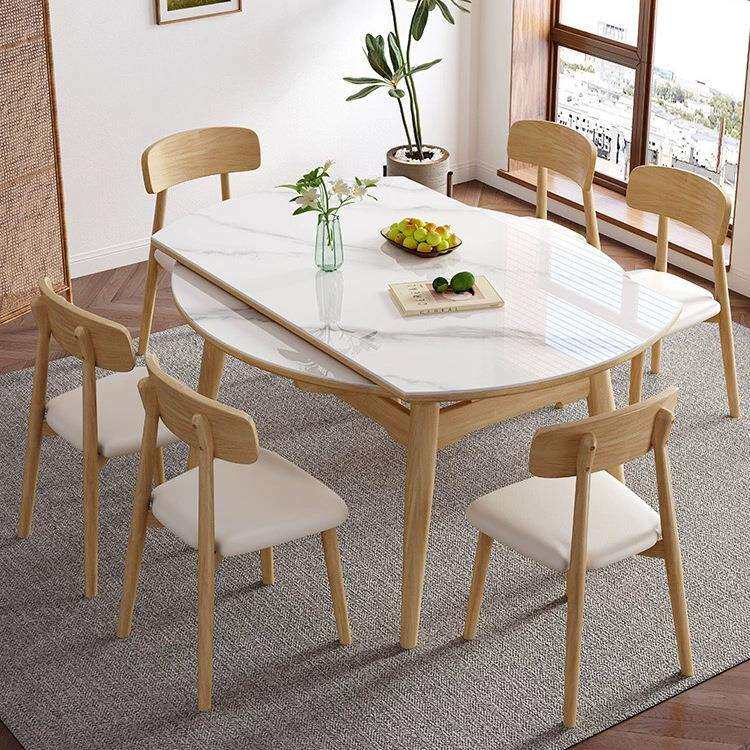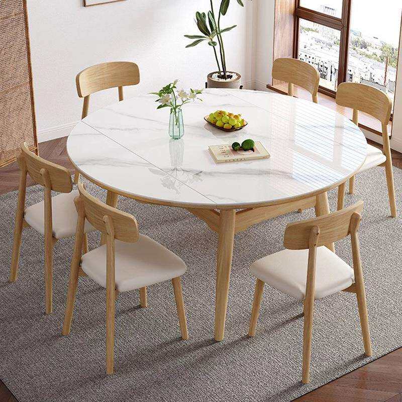 📚 轻奢全实木岩板餐桌诧寂原木风方圆两用伸缩折叠小户型家用吃饭桌