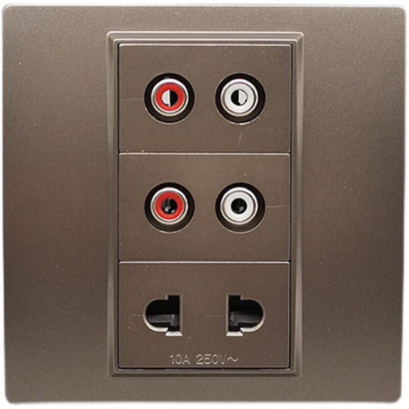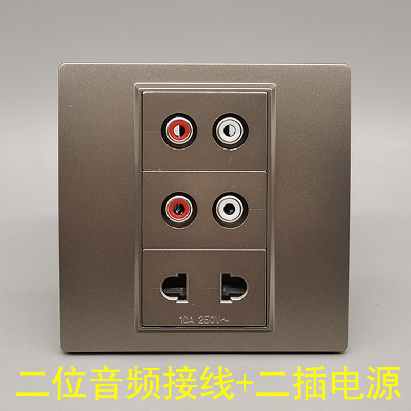 📚 深灰色86型2个莲花音频免焊二插电源插座双孔AV音频免焊二眼二孔