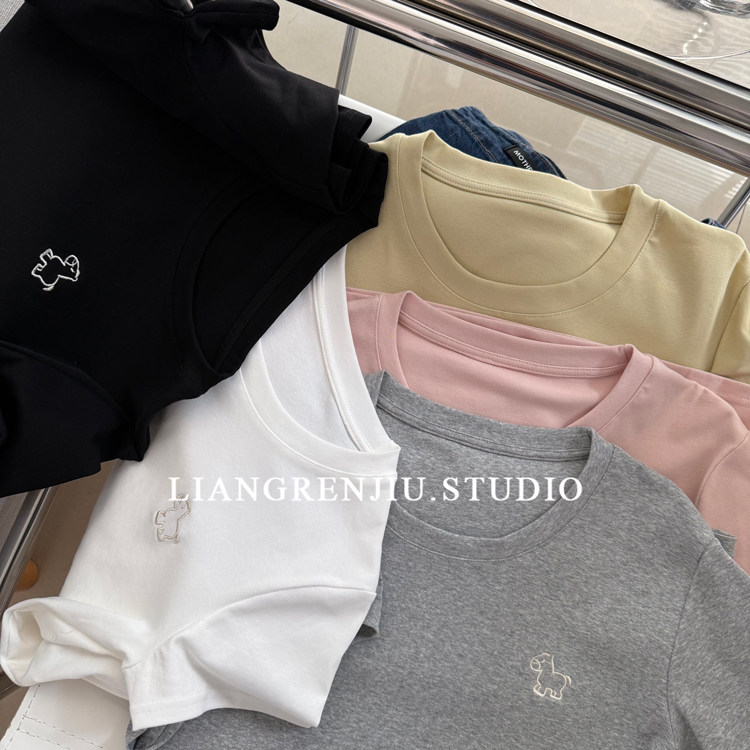 📚 91棉。棉质。优质。小马刺绣正肩基础款夏季短袖多色T恤B1