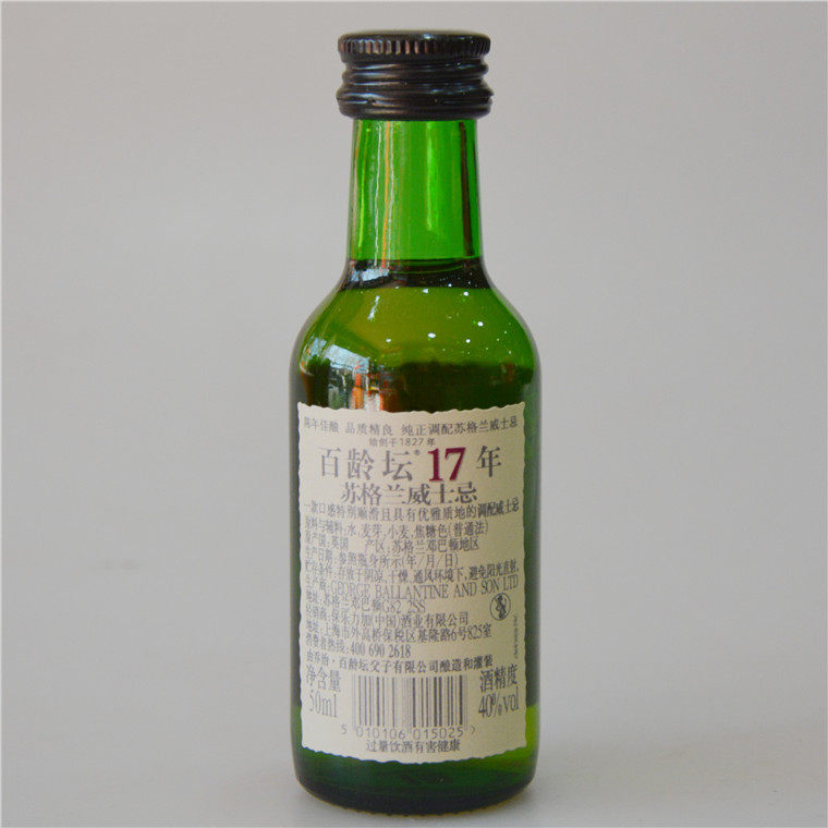 📚 英国百龄坛17年苏格兰调和威士忌50ml小洋酒 酒办 酒样 摆件 收藏