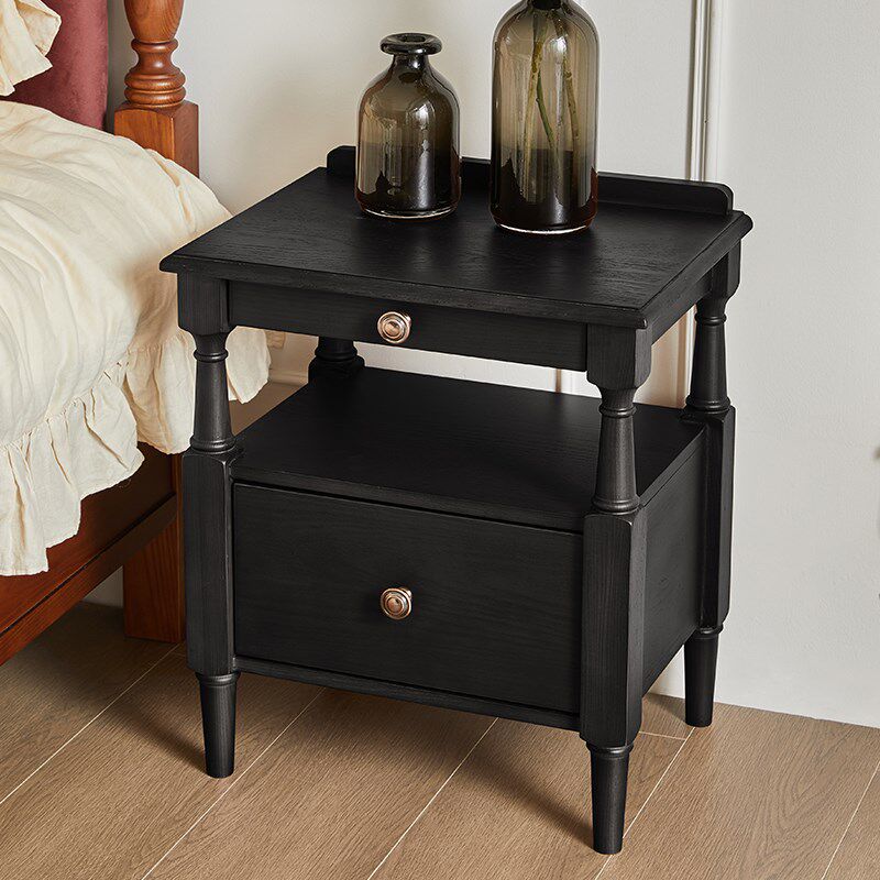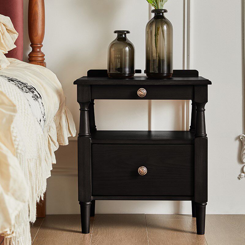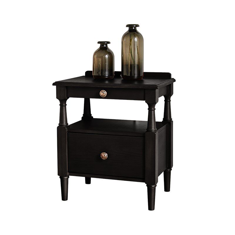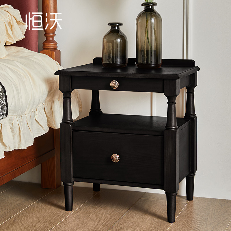 📚 恒沃 床头柜小型法式复古卧室家用黑色白蜡木实木美式床边收纳柜