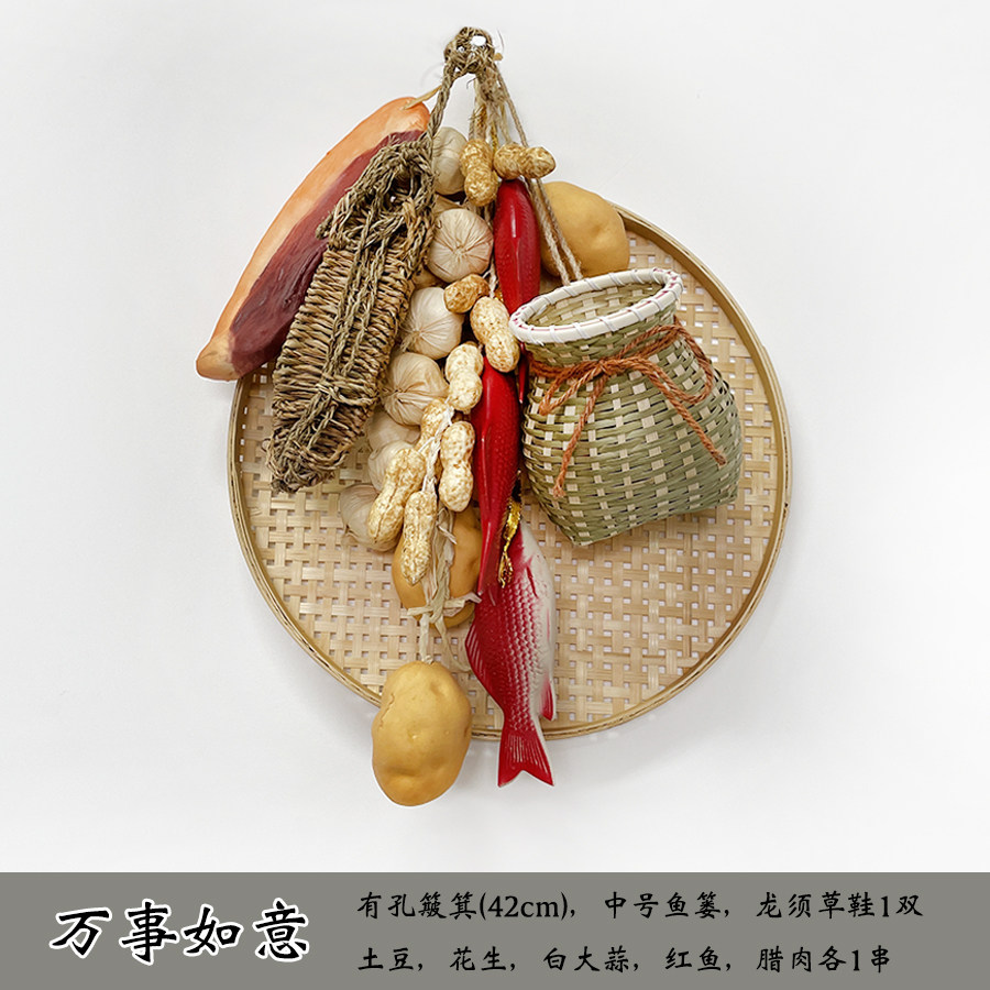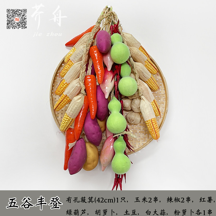 📚 农家乐装饰五谷丰登仿真蔬菜假辣椒串农作物挂件大蒜簸箕怀旧道具