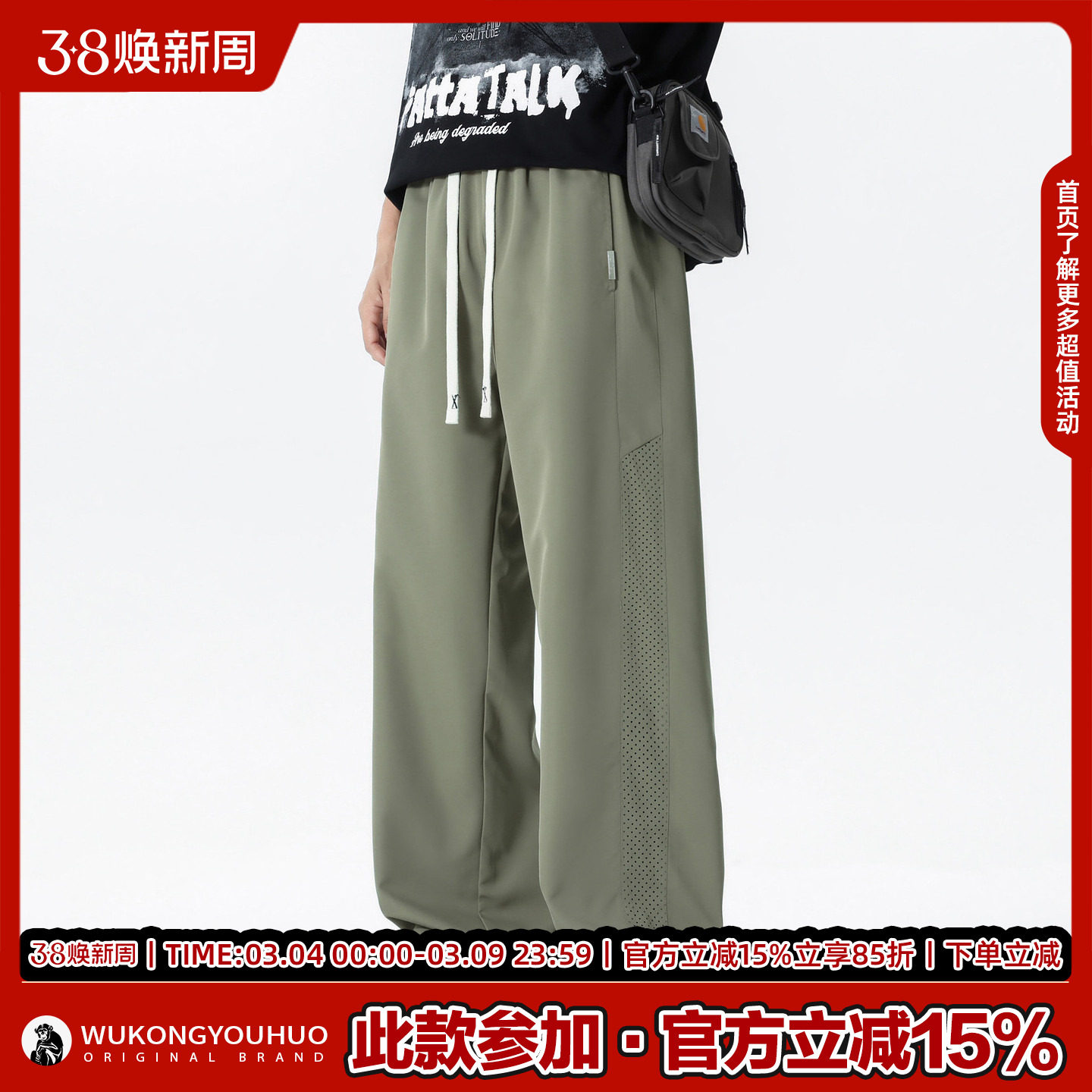 68¥ HU006 okJzUuioPAy¥ https://m.tb.cn/h.i2xz2AK 悟空有货潮牌夏季冰丝透气凉感休闲裤男街头宽松百搭阔腿运动长裤 --------------------- 【原售价】116元 【现售价】58元。