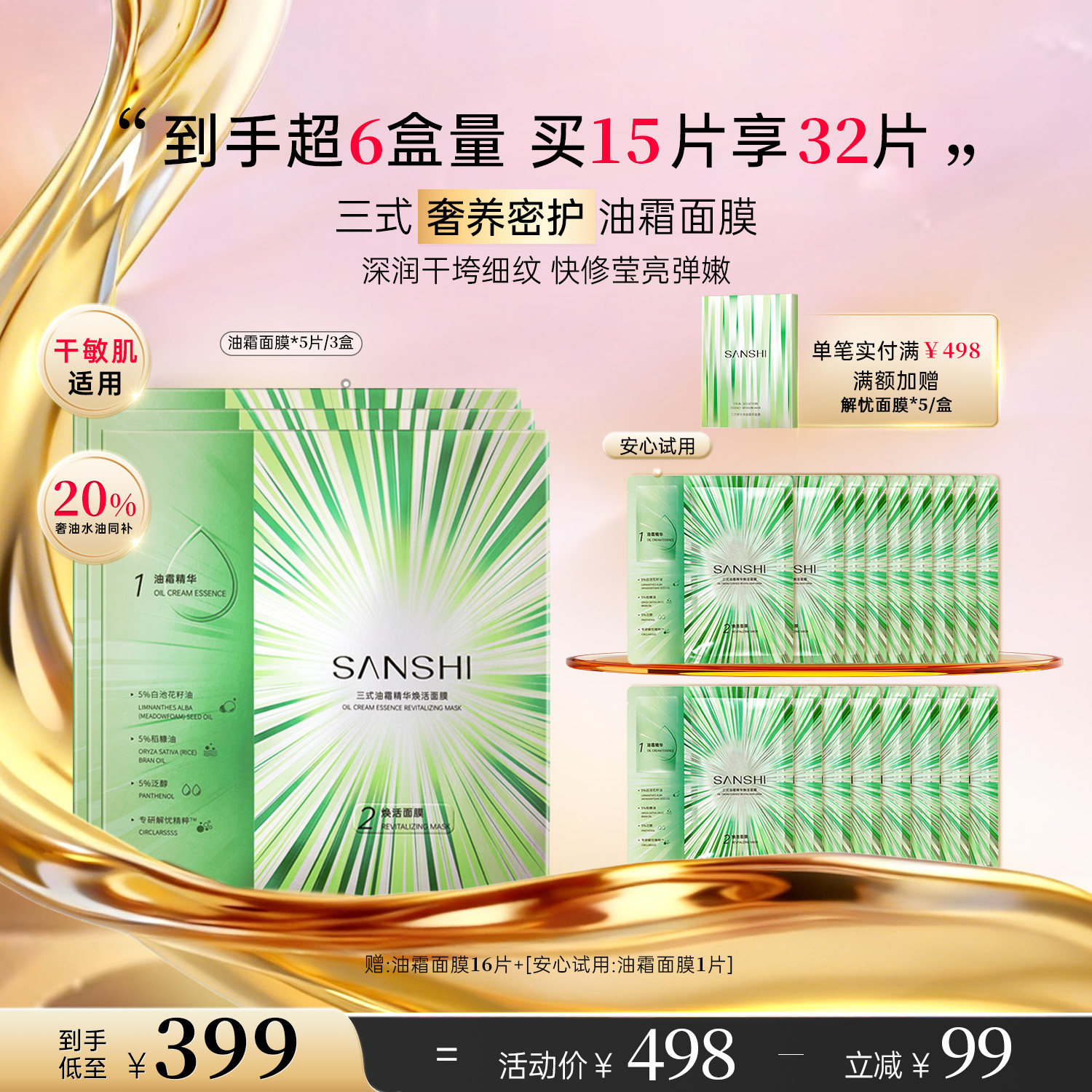 📚 三式春光油霜面膜白池花籽油补水油修护滋养提亮油敷贴片面膜干皮