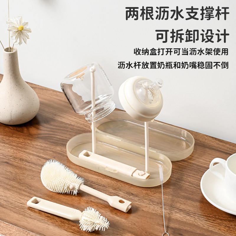 📚 便携式奶瓶刷套装宝宝清洁刷婴儿专用洗奶瓶沥水架便携6件套