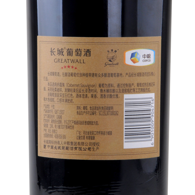 📚 长城红酒整箱 官方授权 中粮 长城五星赤霞珠干红 葡萄酒750ml*6