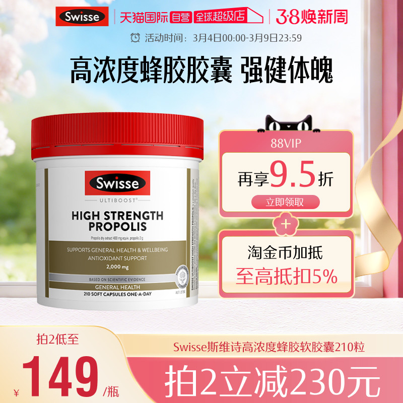 📚 【自营】Swisse斯维诗高浓度蜂胶软胶囊210粒