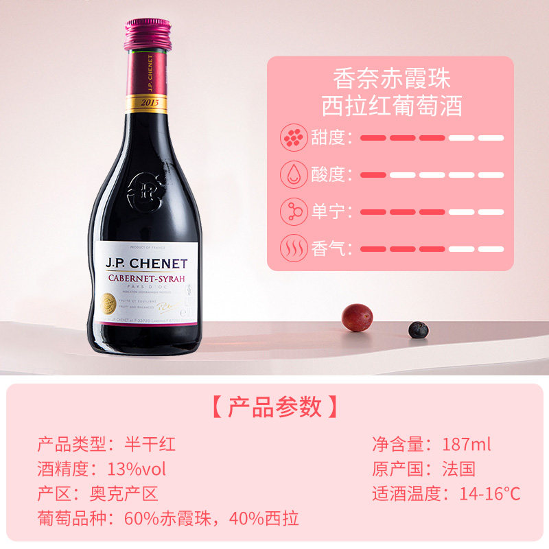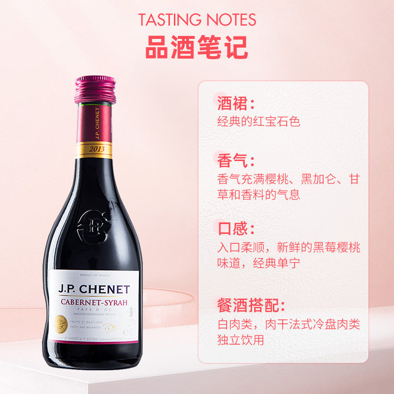📚 【自营】J.P.CHENET香奈红酒赤霞珠西拉红葡萄酒干红葡萄酒187ml