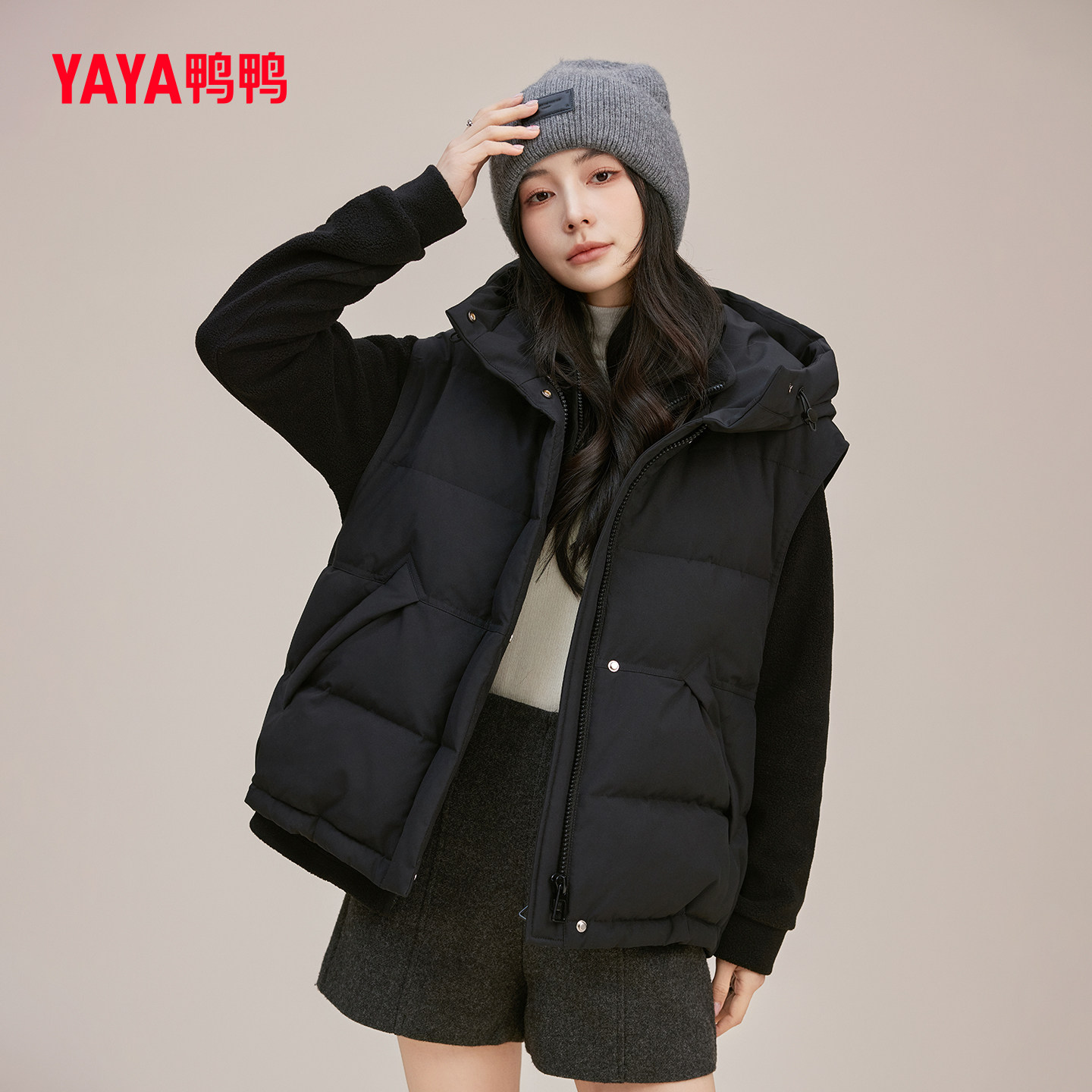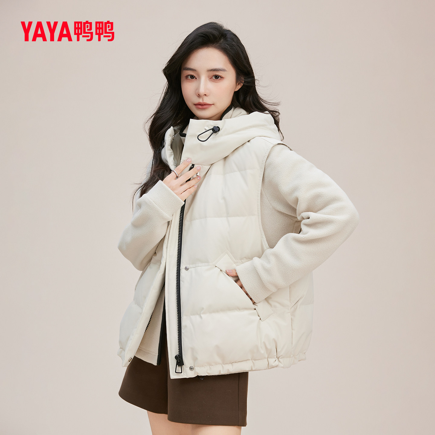 📚 YAYA鸭鸭羽绒马甲女款立领连帽秋冬季柔软90绒百搭时尚舒适保暖潮