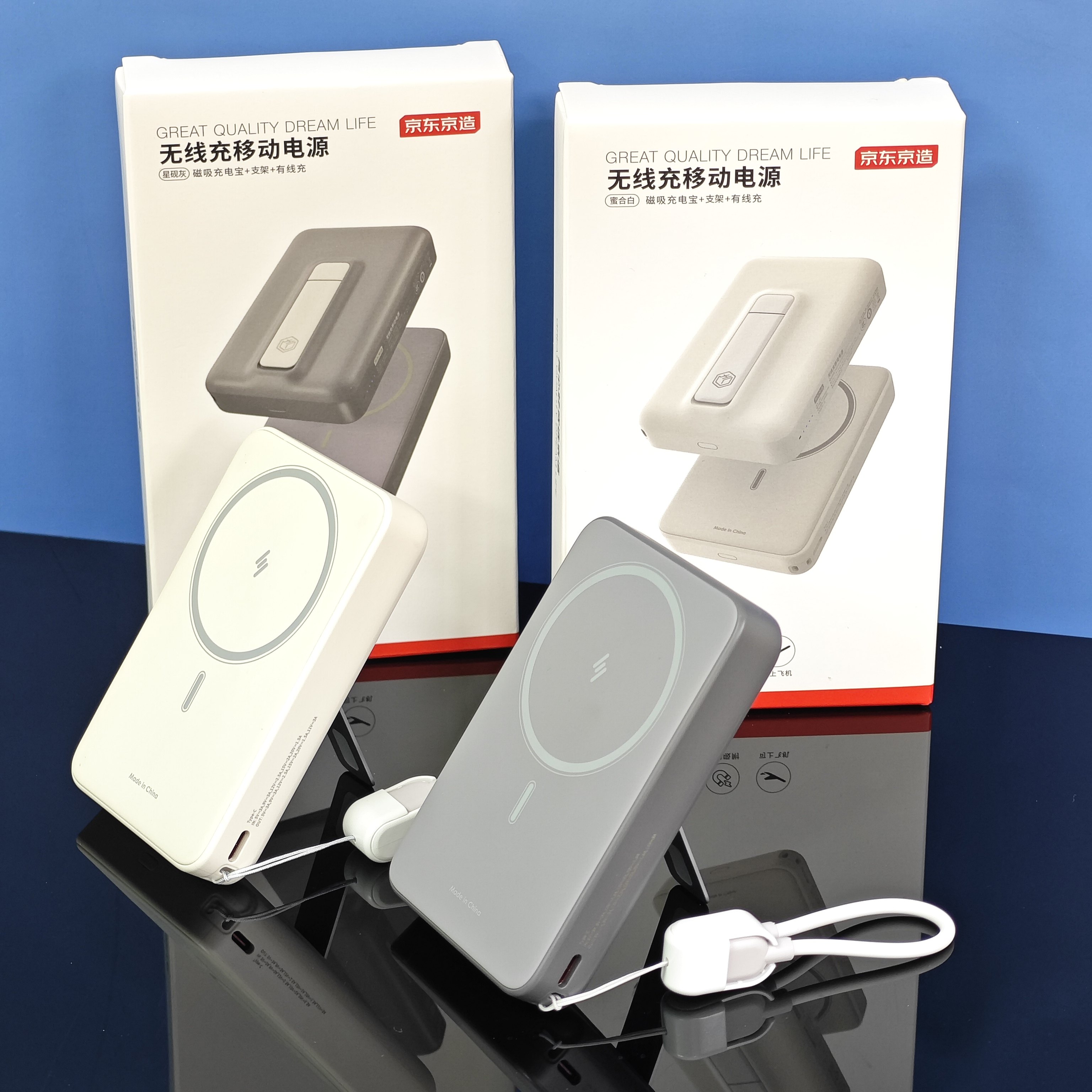 📚 京东京造10000mAh33W无线移动电源磁吸充电宝自带线支架3C认证