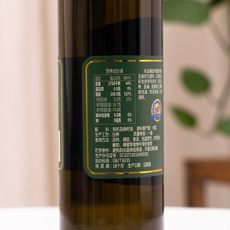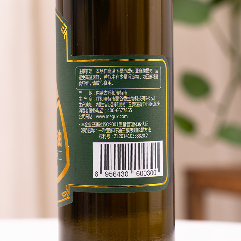 📚 内蒙古特产蒙谷香有机亚麻籽油250ml 冷榨初榨脱蜡食用亚麻仔油