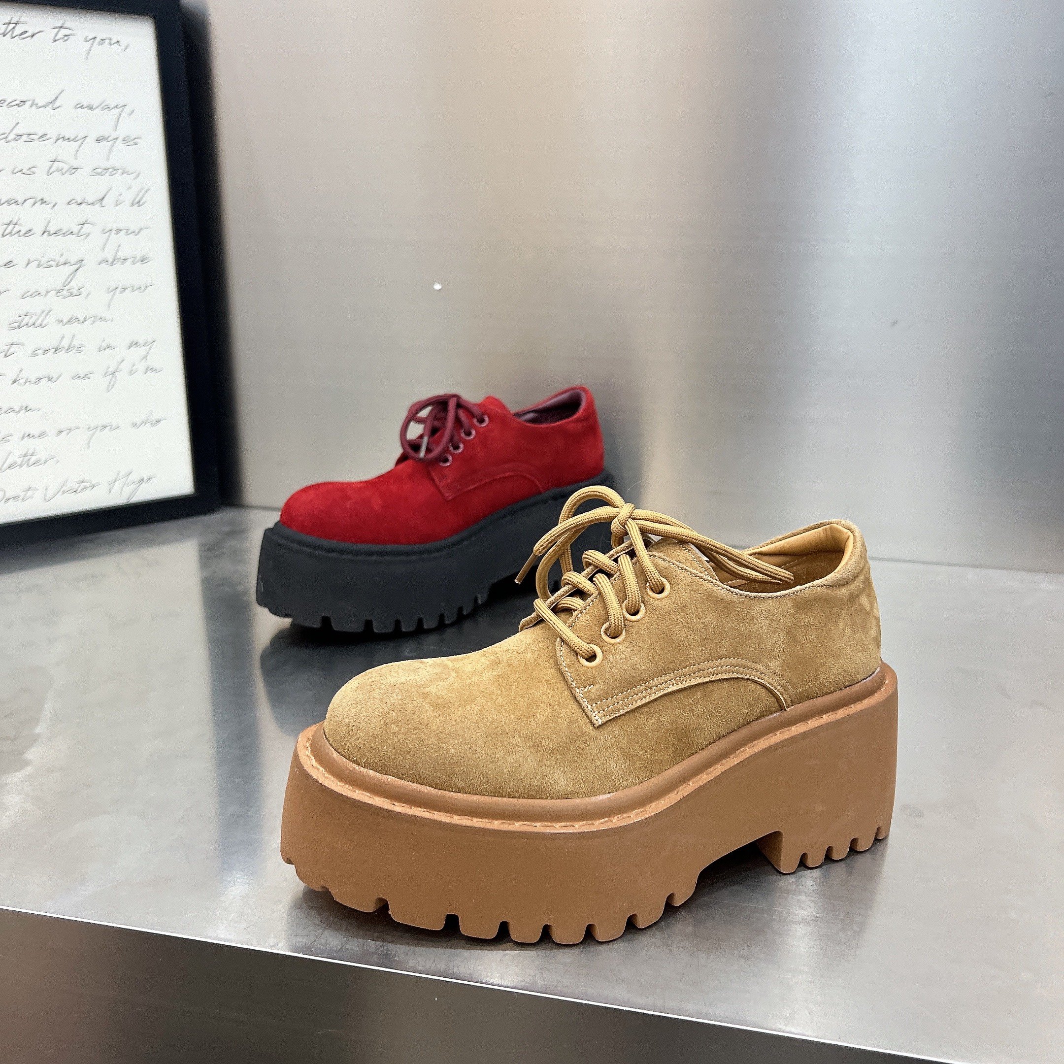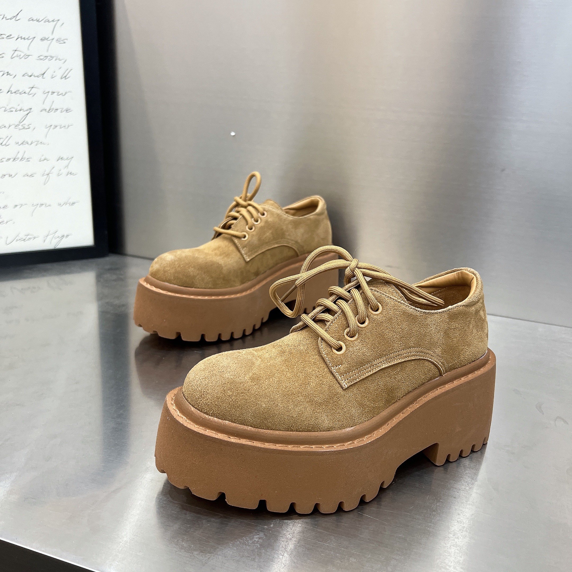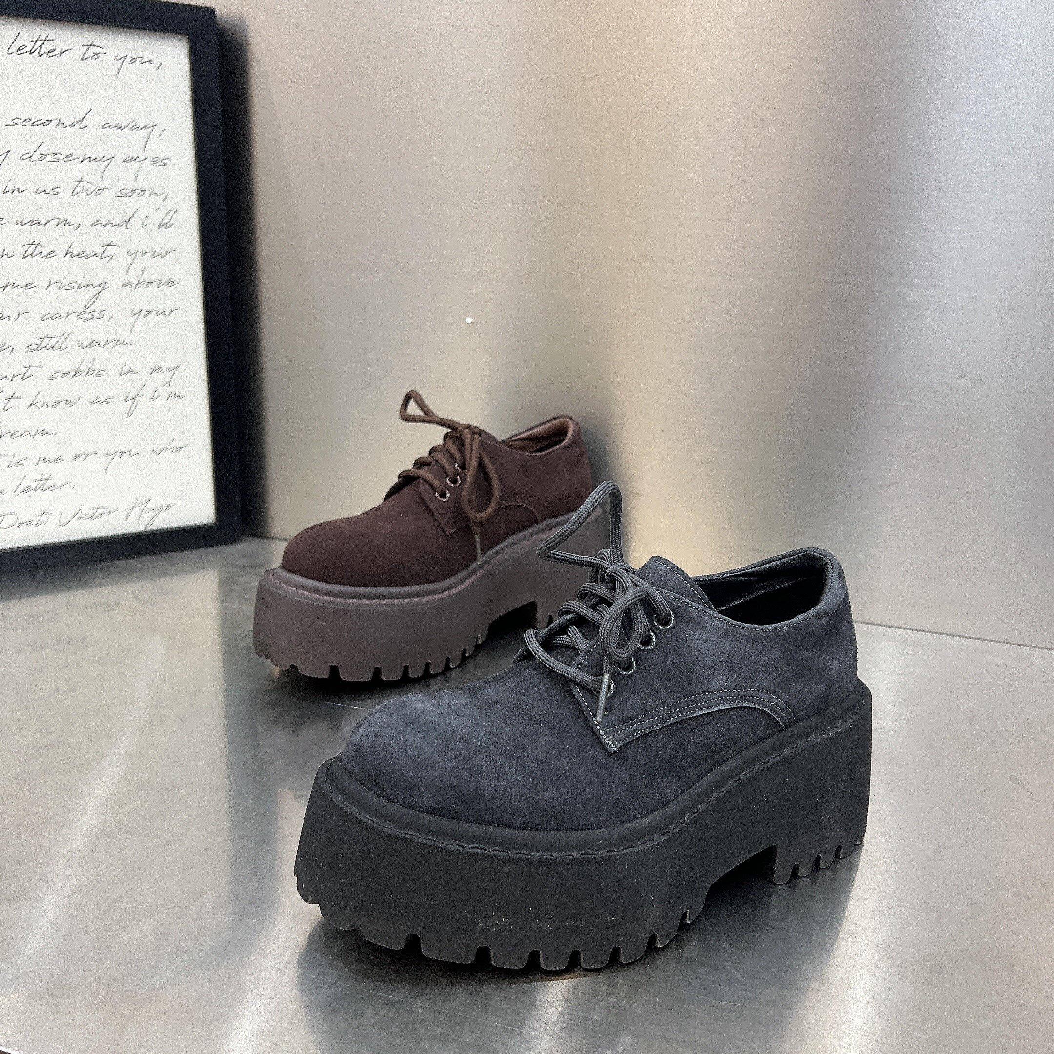 📚 欧货磨砂皮乐福鞋女2026新款厚底松糕尖头单鞋休闲鞋小个子低帮鞋