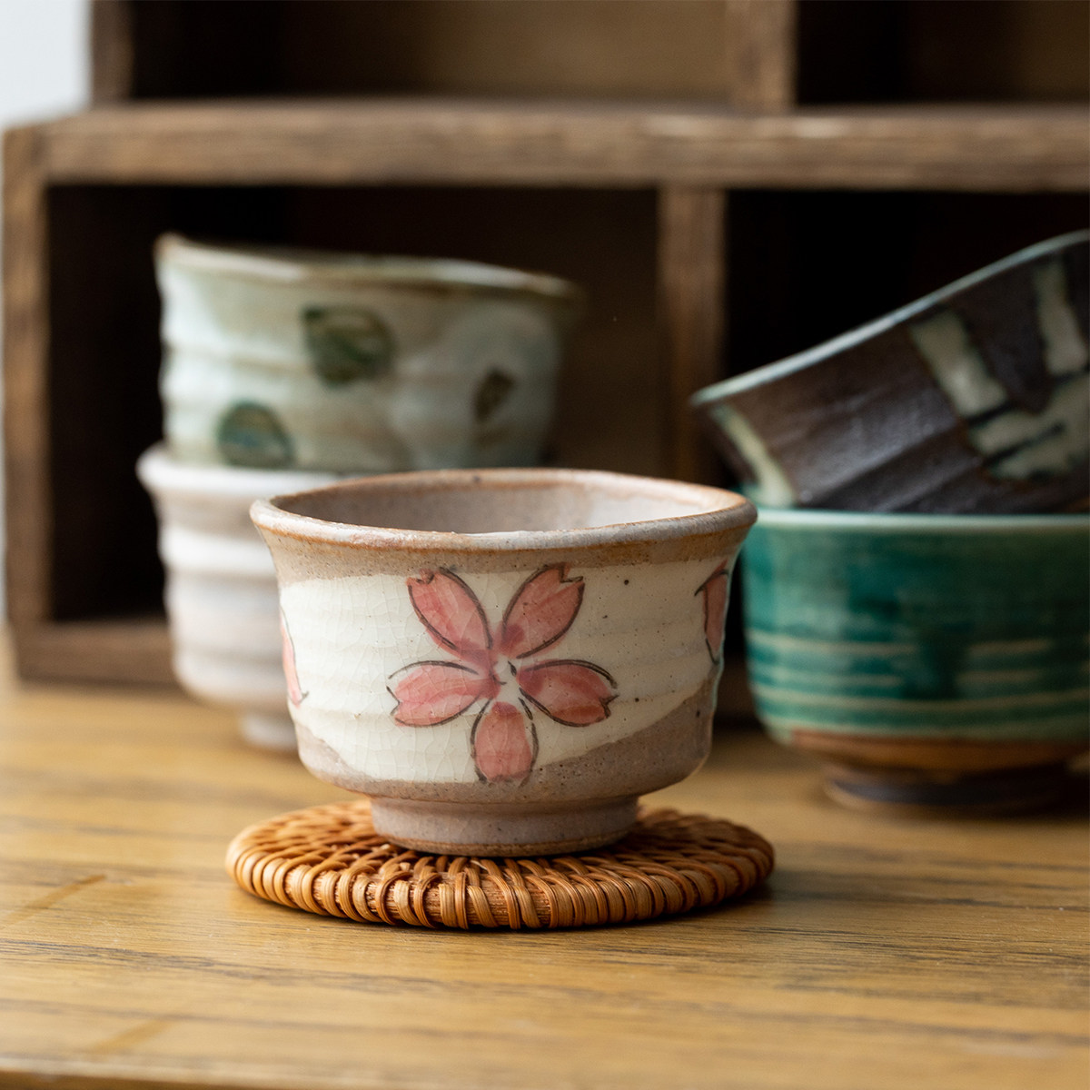 📚 日本进口美浓烧志野樱花茶杯日式清酒杯复古冰裂釉品茗杯主人杯子